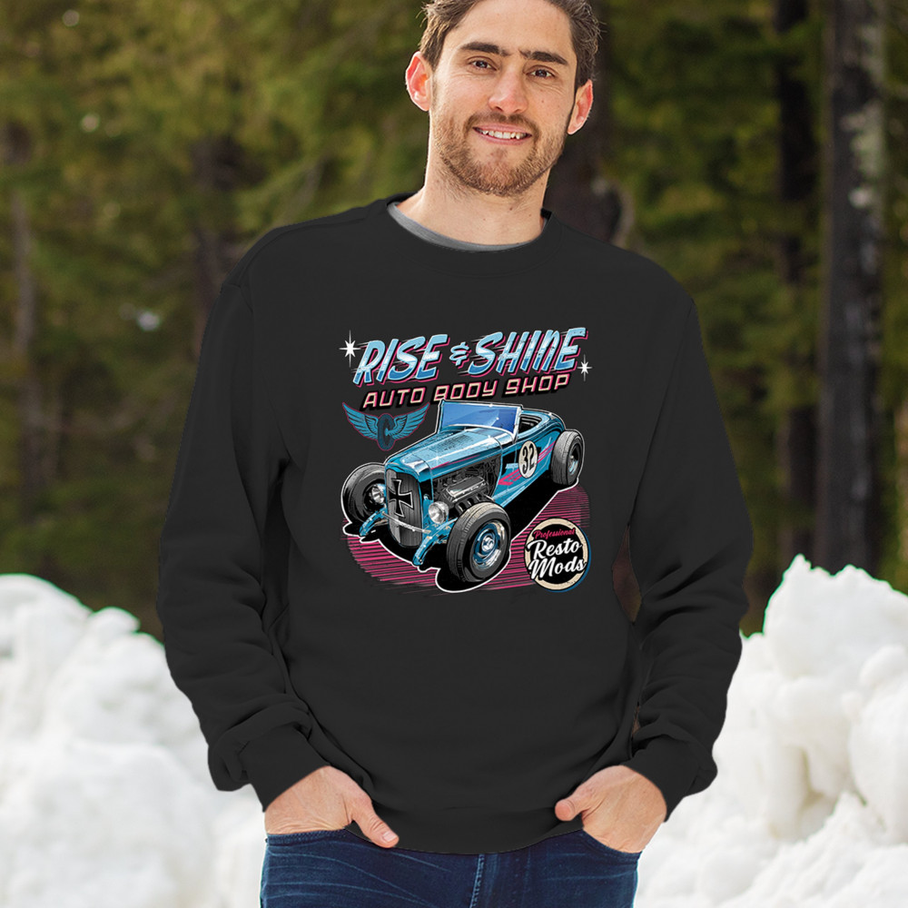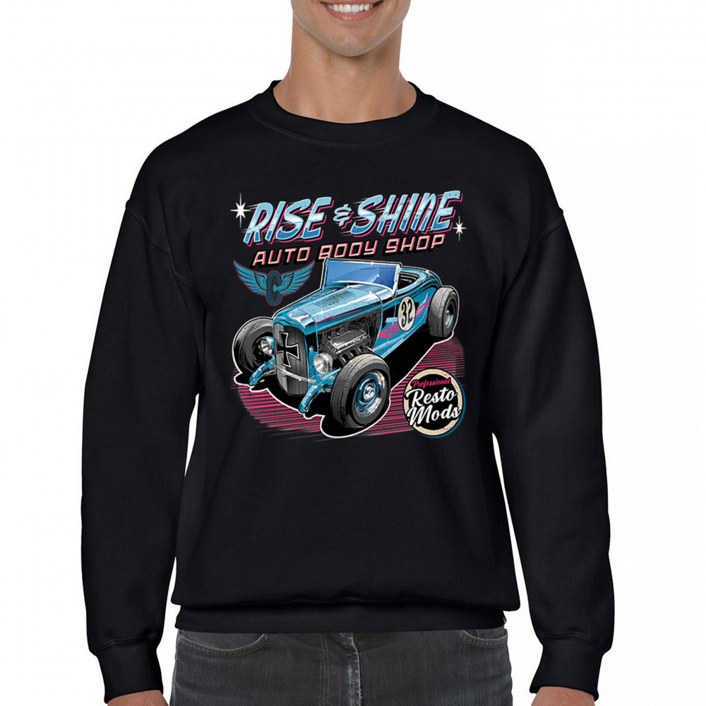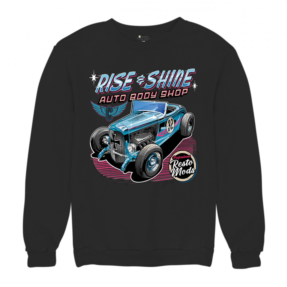 RISE AND SHINE HOT ROD sweatshirt auto body shop custom classic cars crewneck black