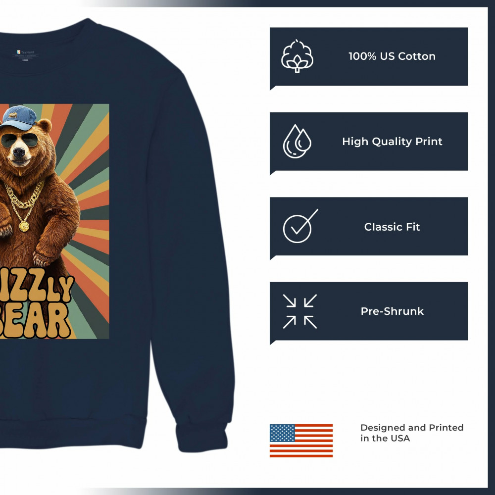 What happens when a bear strolls through the city and grabs a cap and some gold? You get the Rizzly Bear. It's fun, fearless, and a bit funky – a true original in the world of graphic design, just like you.