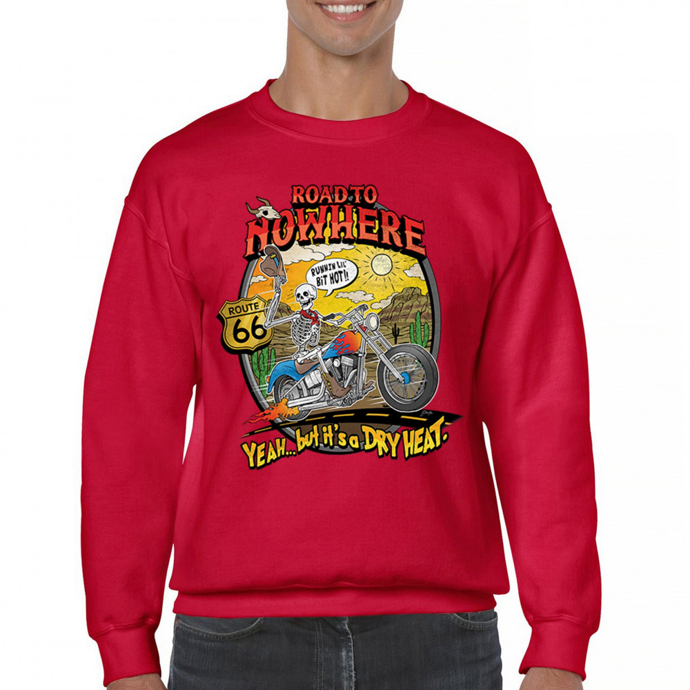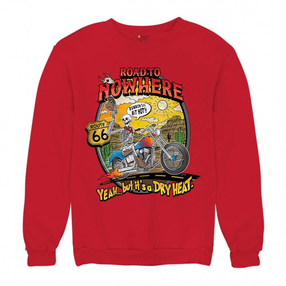 Discover the 'Road to Nowhere' T-shirt: a blend of bold graphics and adventurous spirit. Embrace the ride with our Route 66 skeleton biker design.