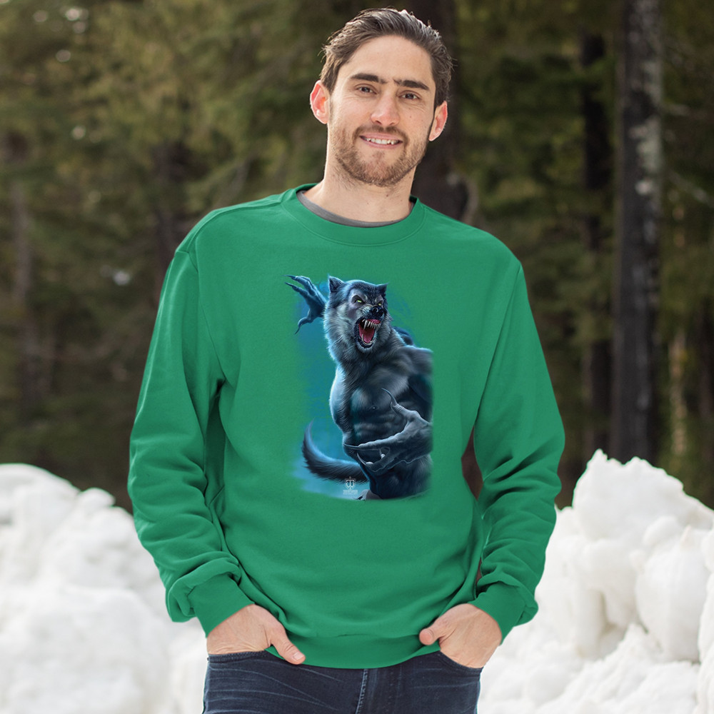 ROARING WEREWOLF sweatshirt halloween horror scary gothic monster crewneck green
