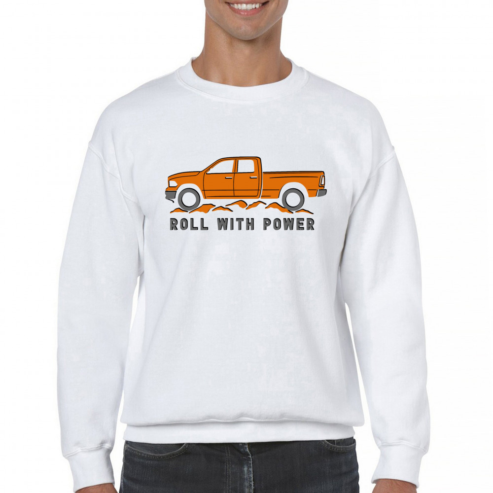 Pickup truck design for off-road fans and truck lovers. Show your road power and style with this bold “Roll With Power†truck graphic.