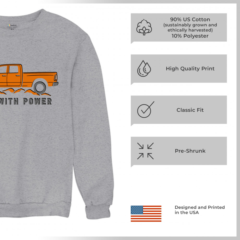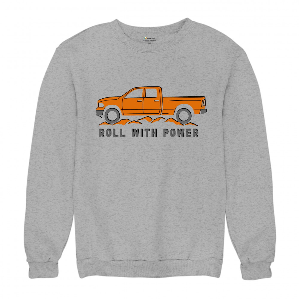 Pickup truck design for off-road fans and truck lovers. Show your road power and style with this bold “Roll With Power†truck graphic.