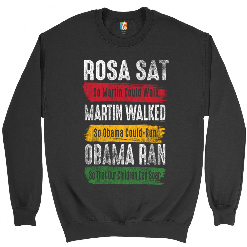 ROSA SAT MARTIN WALKED OBAMA RAN sweatshirt blm civil rights equality crewneck black