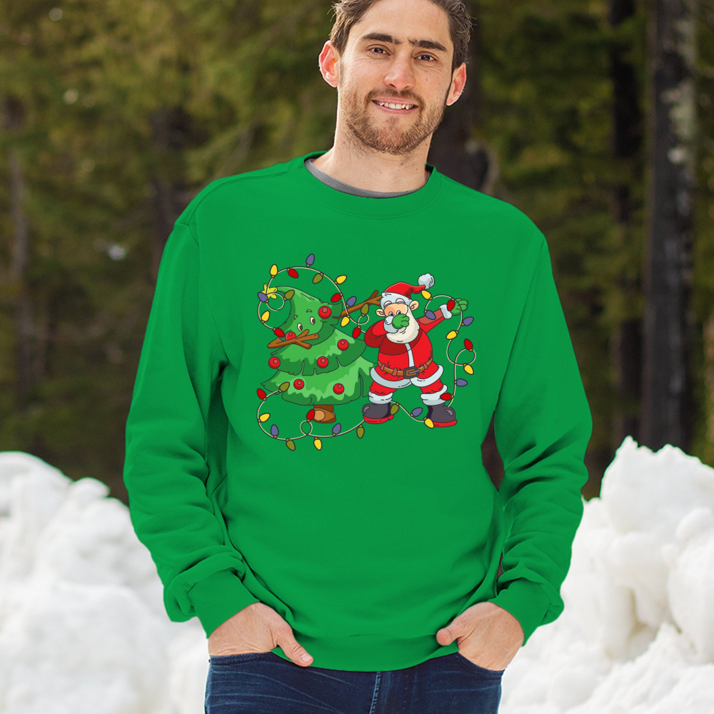 SANTA CLAUS DABBING WITH CHRISTMAS TREE sweatshirt merry and bright crewneck green