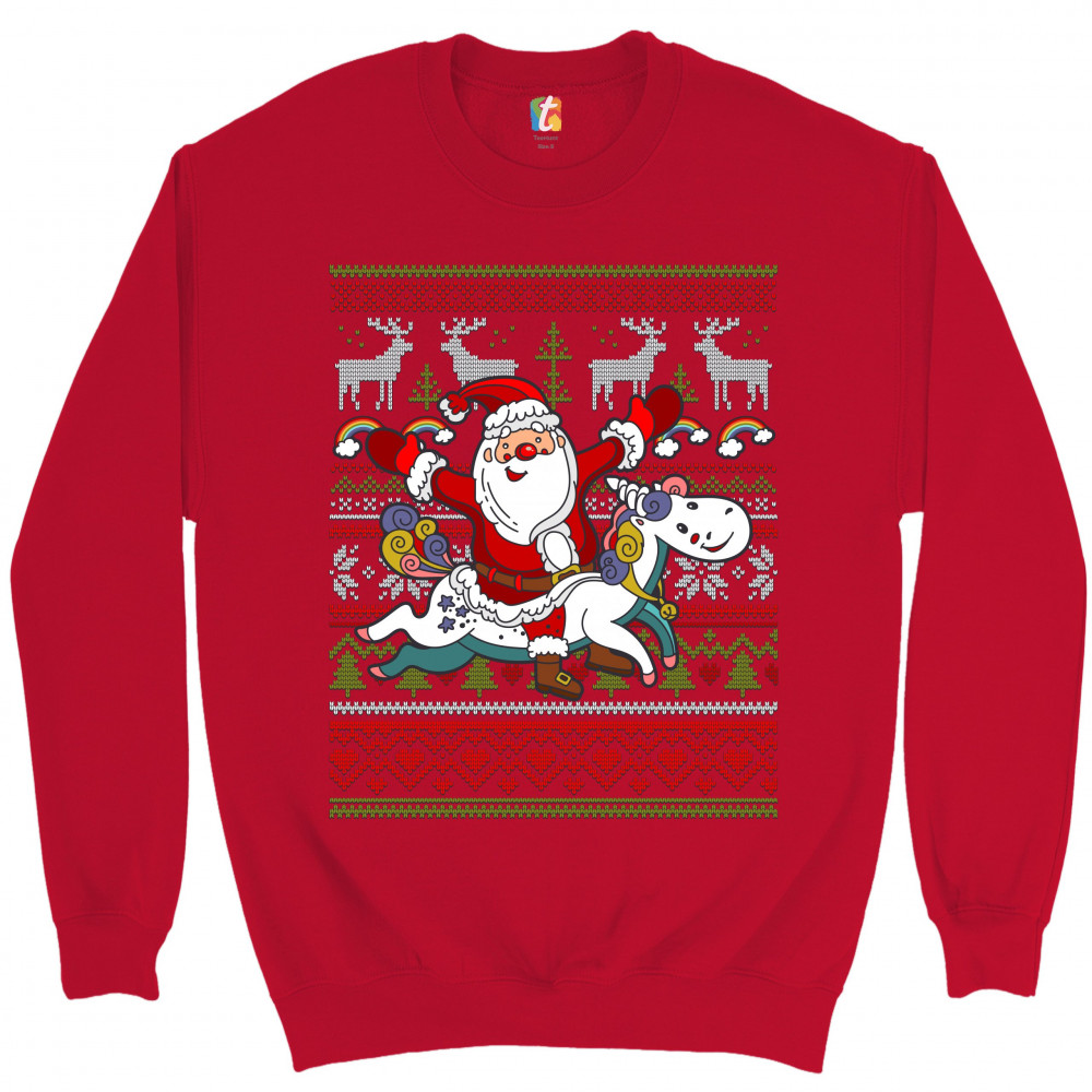 SANTA CLAUS RIDING A UNICORN sweatshirt merry christmas ugly sweater crewneck red