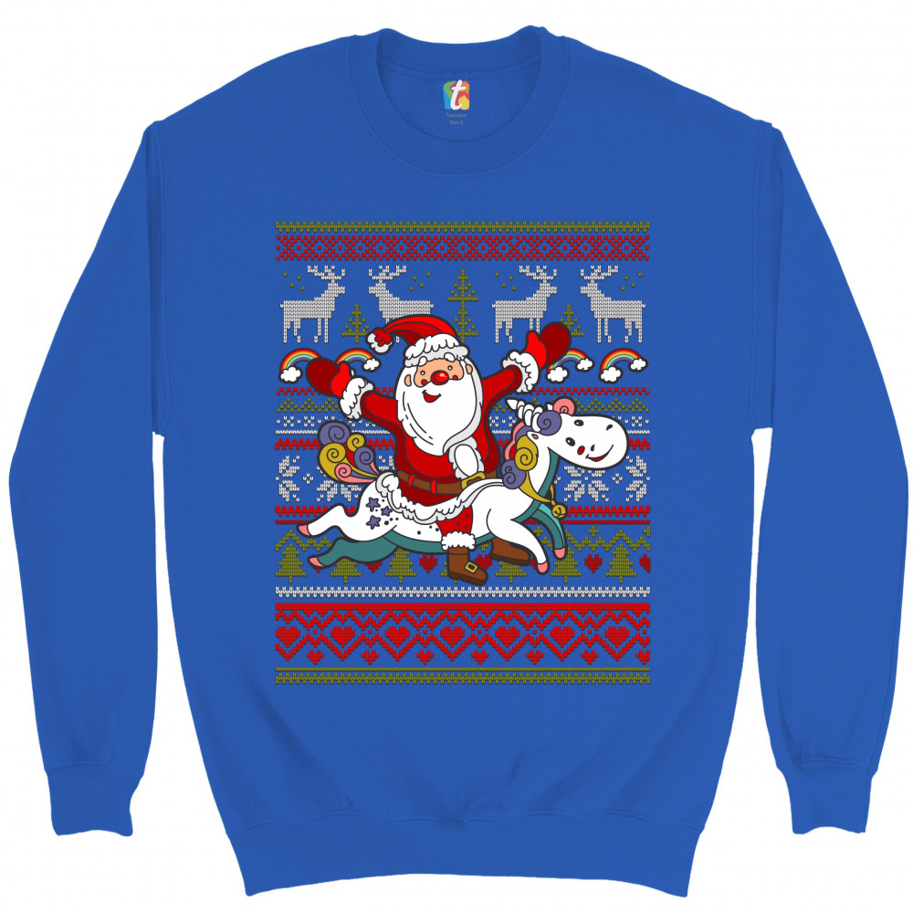 SANTA CLAUS RIDING A UNICORN sweatshirt merry christmas ugly sweater crewneck royal blue
