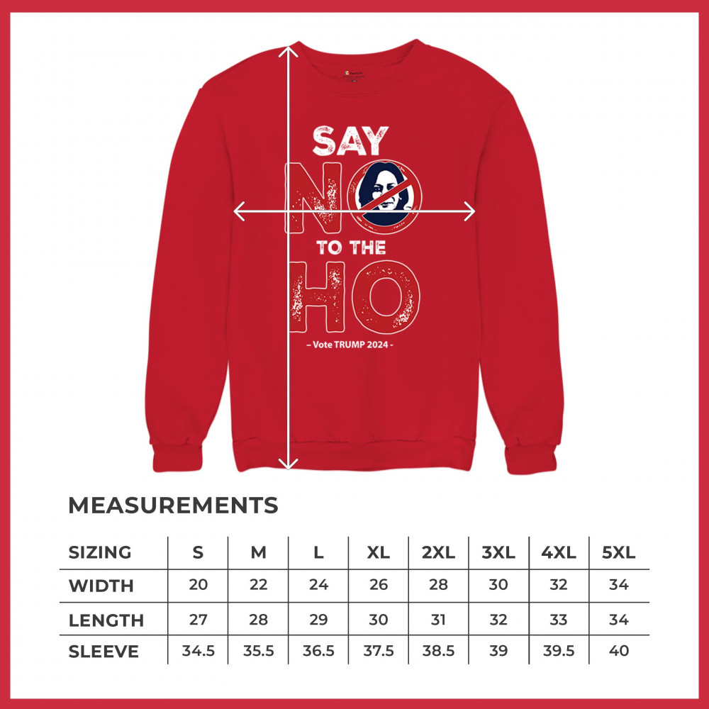 Show your conservative spirit with the "Say No to the Ho" print, perfect for rallies or daily wear. Support Trump-Vance 2024 and Make America Great Again.
