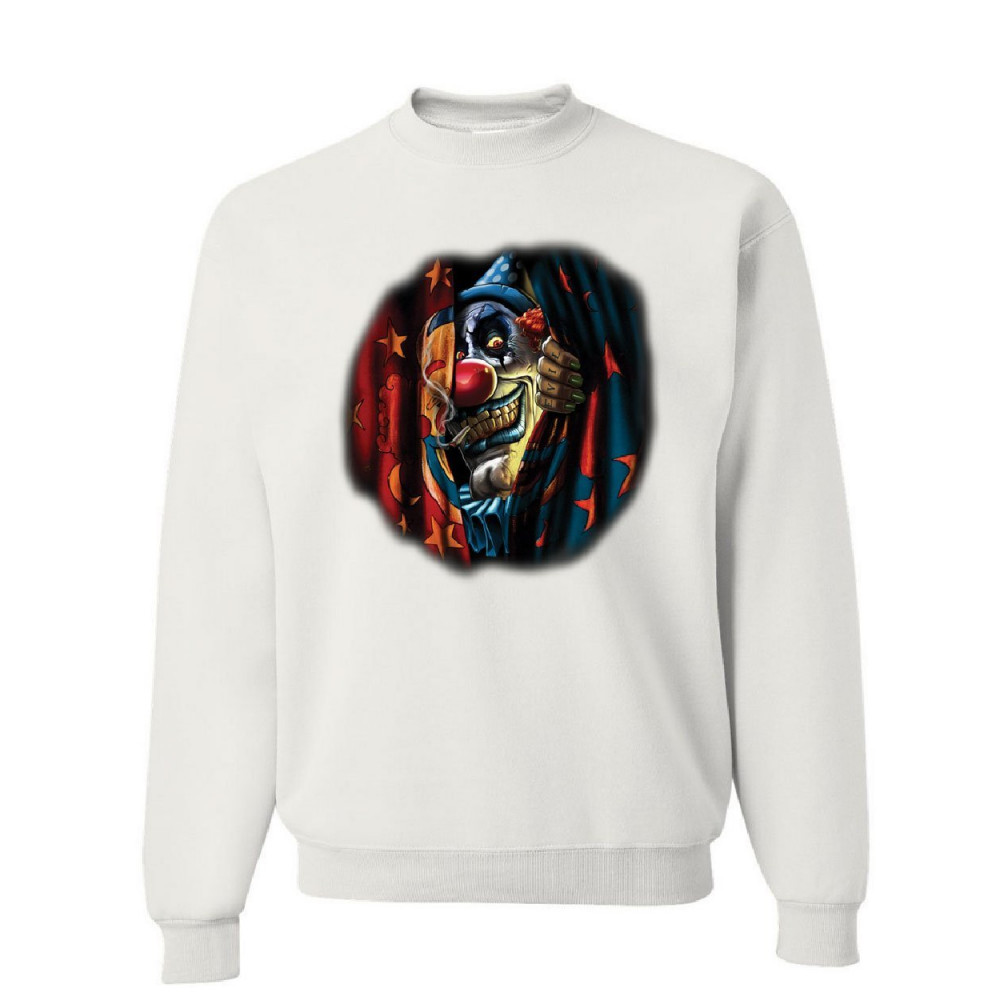 SCARY CIRCUS CLOWN sweatshirt insane creepy clown evil mad horror sweater white