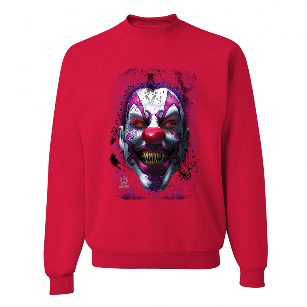 SCARY CREEPY GRINNING CLOWN sweatshirt spooky halloween horror crewneck red