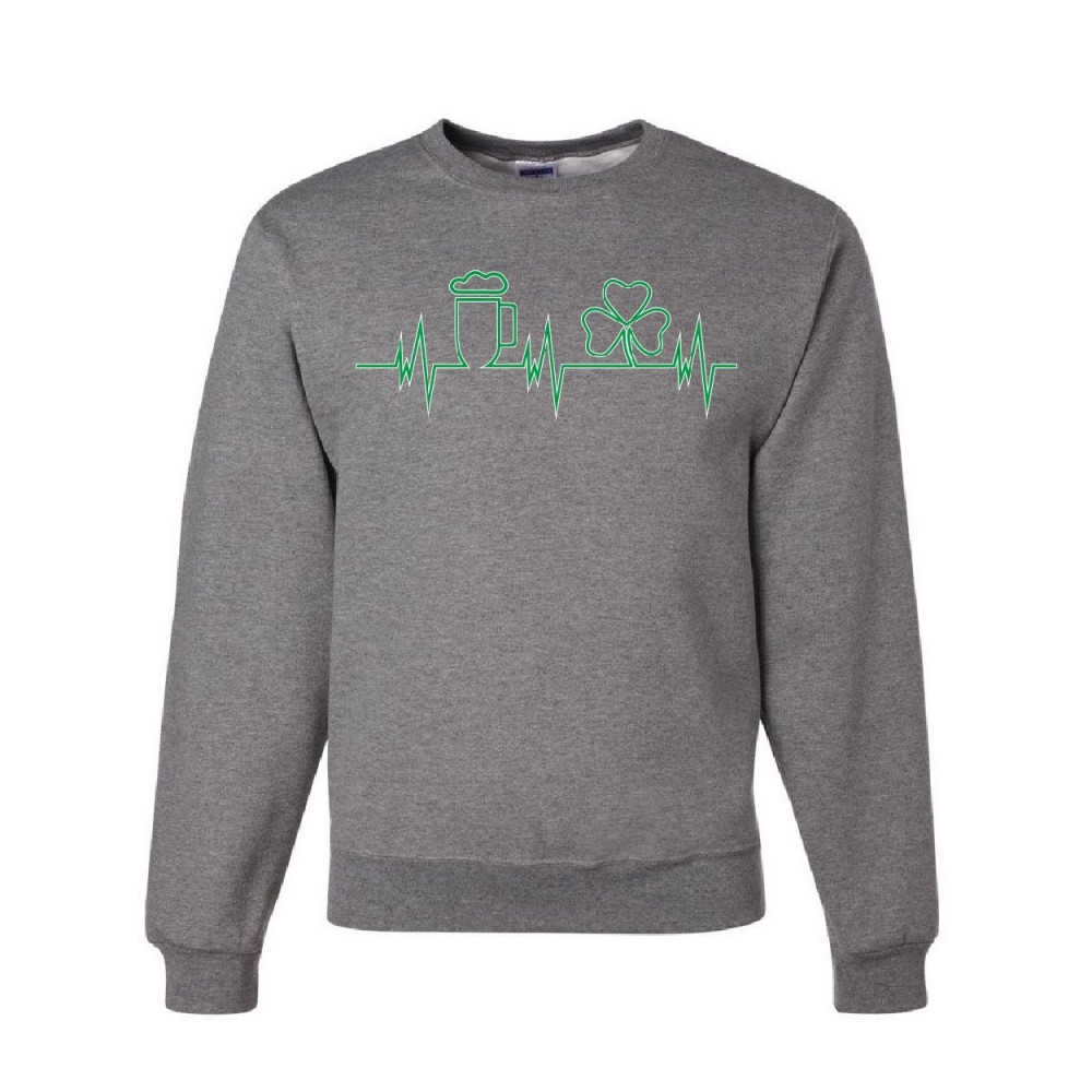 SHAMROCK & BEER HEARTBEET shamrock beer heartbeet sweatshirt st. patrick's day irish drinking sweater gray