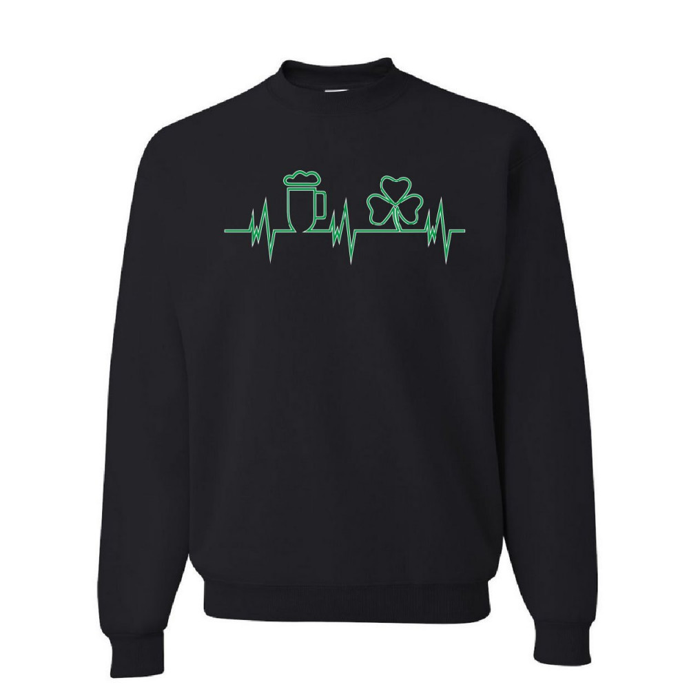 SHAMROCK & BEER HEARTBEET shamrock beer heartbeet sweatshirt st. patrick's day irish drinking sweater black