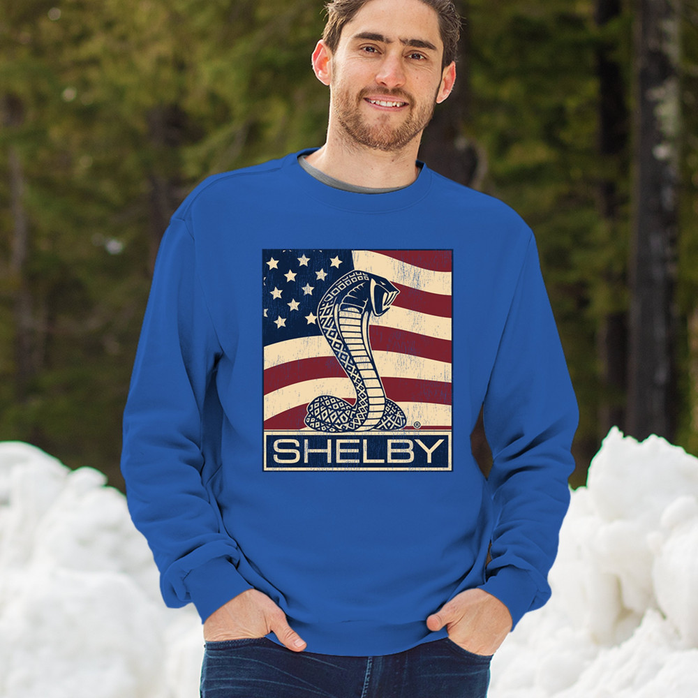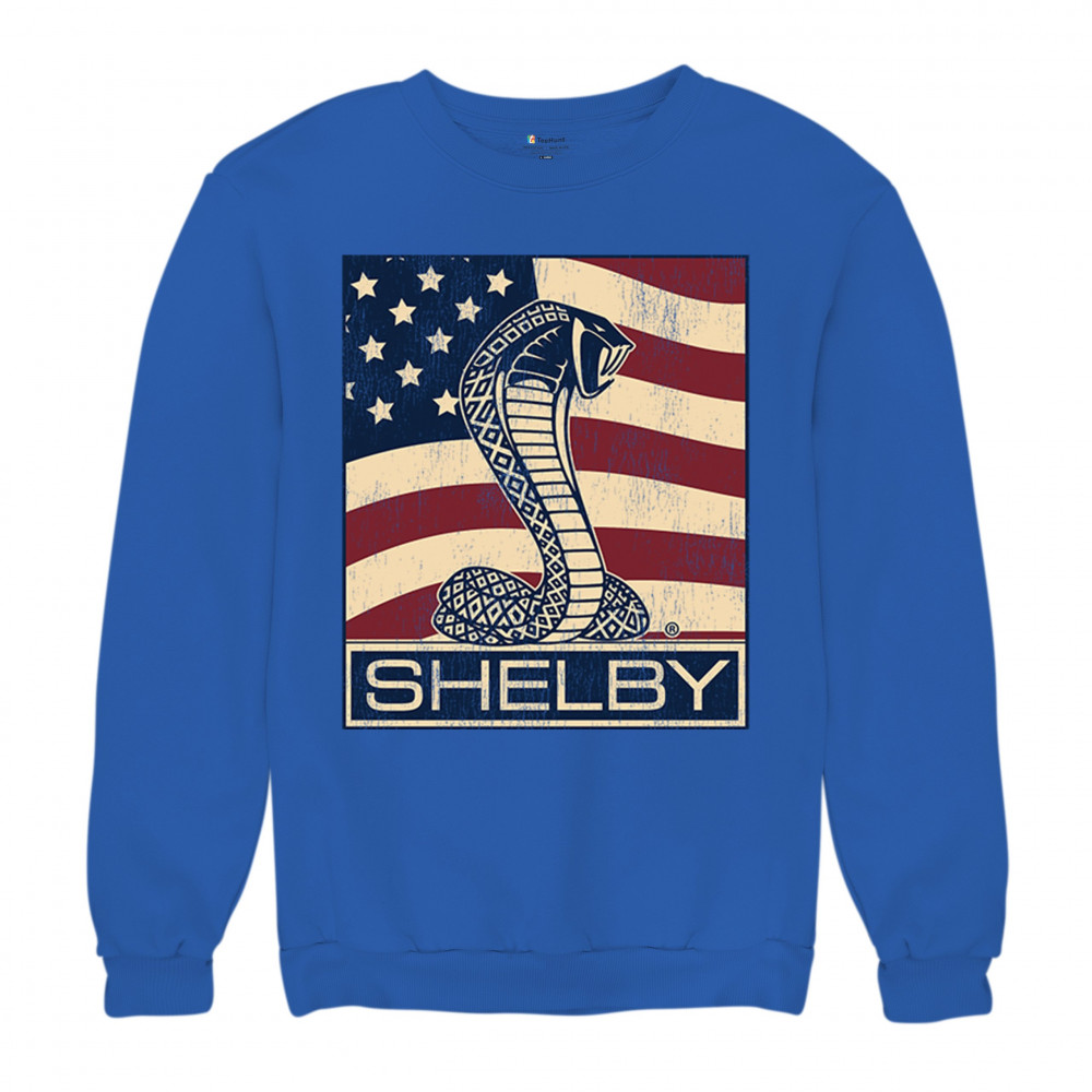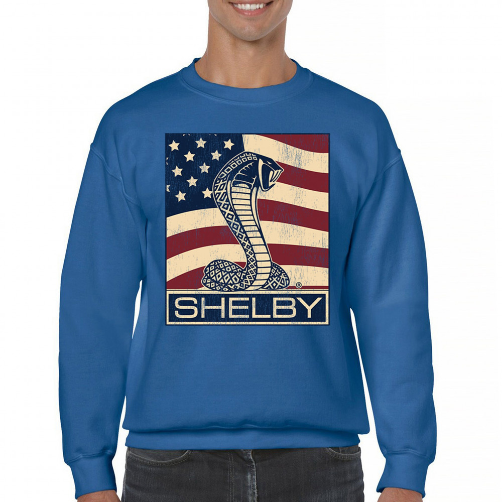 SHELBY COBRA FLAG sweatshirt legend racing mustang gt powered by ford crewneck royal blue