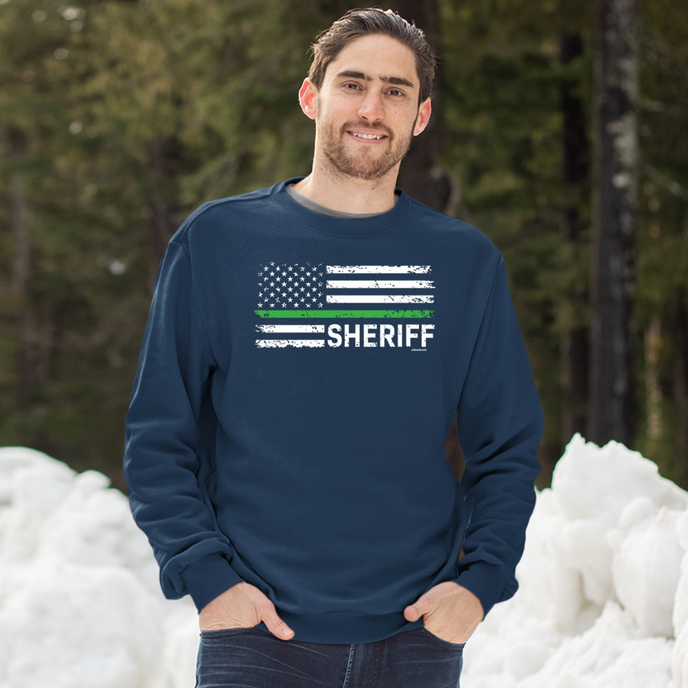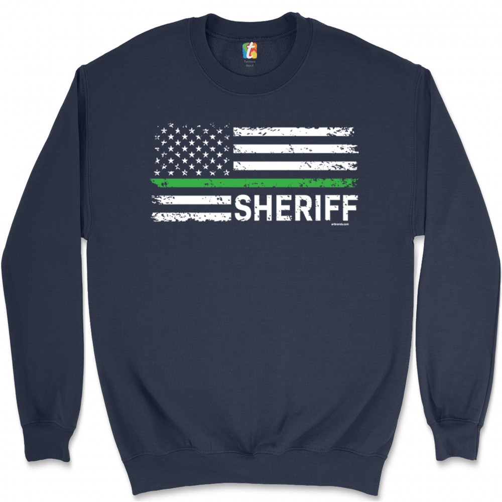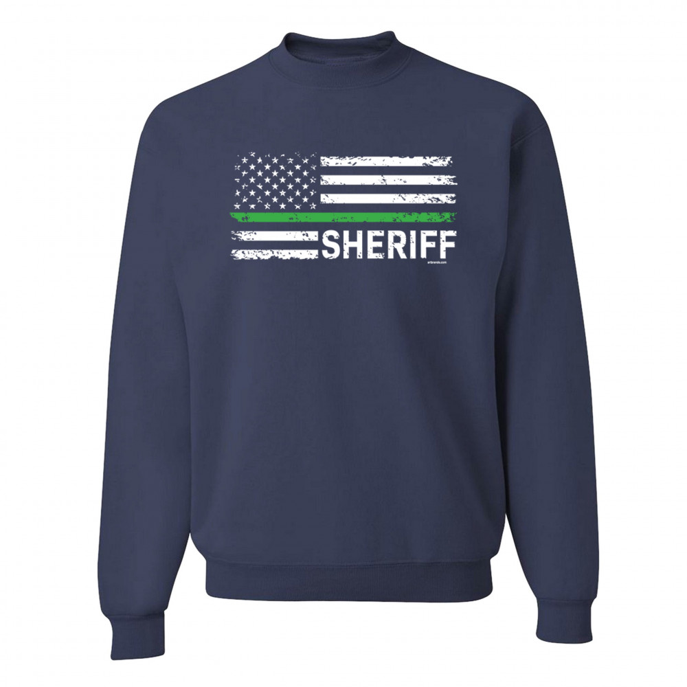 SHERIFF DISTRESSED AMERICAN FLAG sweatshirt first responders patriotic crewneck navy blue