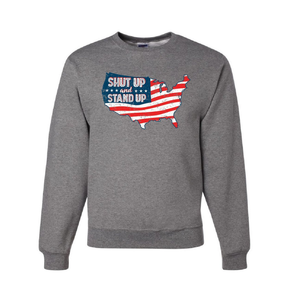 SHUT UP AND STAND UP sweatshirt anthem usa map maga flag patriotic sweater gray