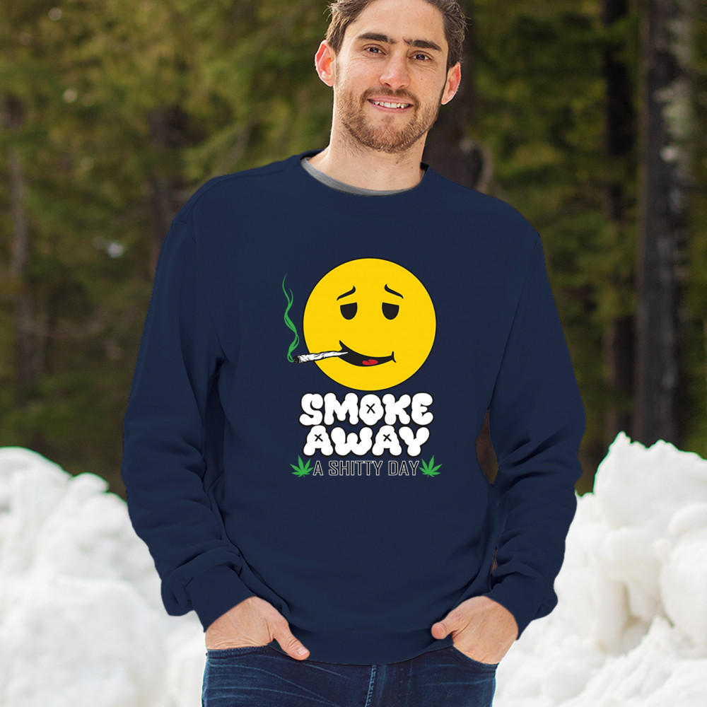 Smiley face with joint and “Smoke Away a Sh*tty Day†message. A perfect cannabis design for stoners, chillers, and sarcastic stress relief.
