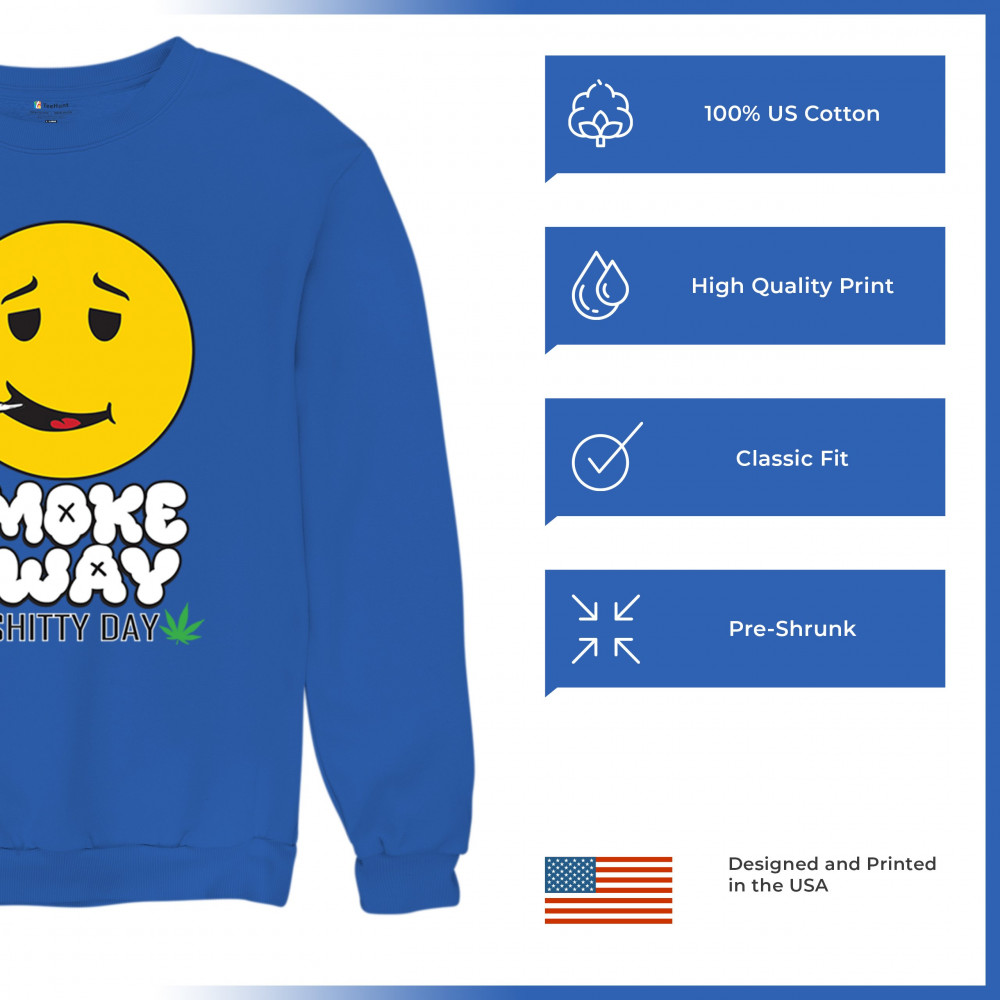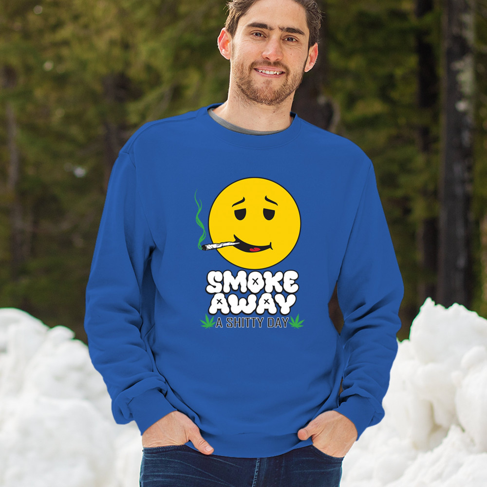 Smiley face with joint and “Smoke Away a Sh*tty Day†message. A perfect cannabis design for stoners, chillers, and sarcastic stress relief.