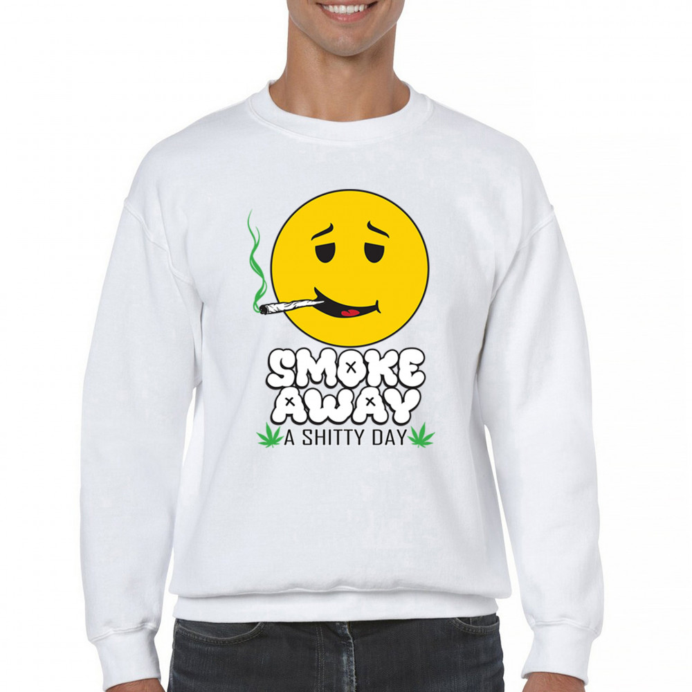 Smiley face with joint and “Smoke Away a Sh*tty Day†message. A perfect cannabis design for stoners, chillers, and sarcastic stress relief.