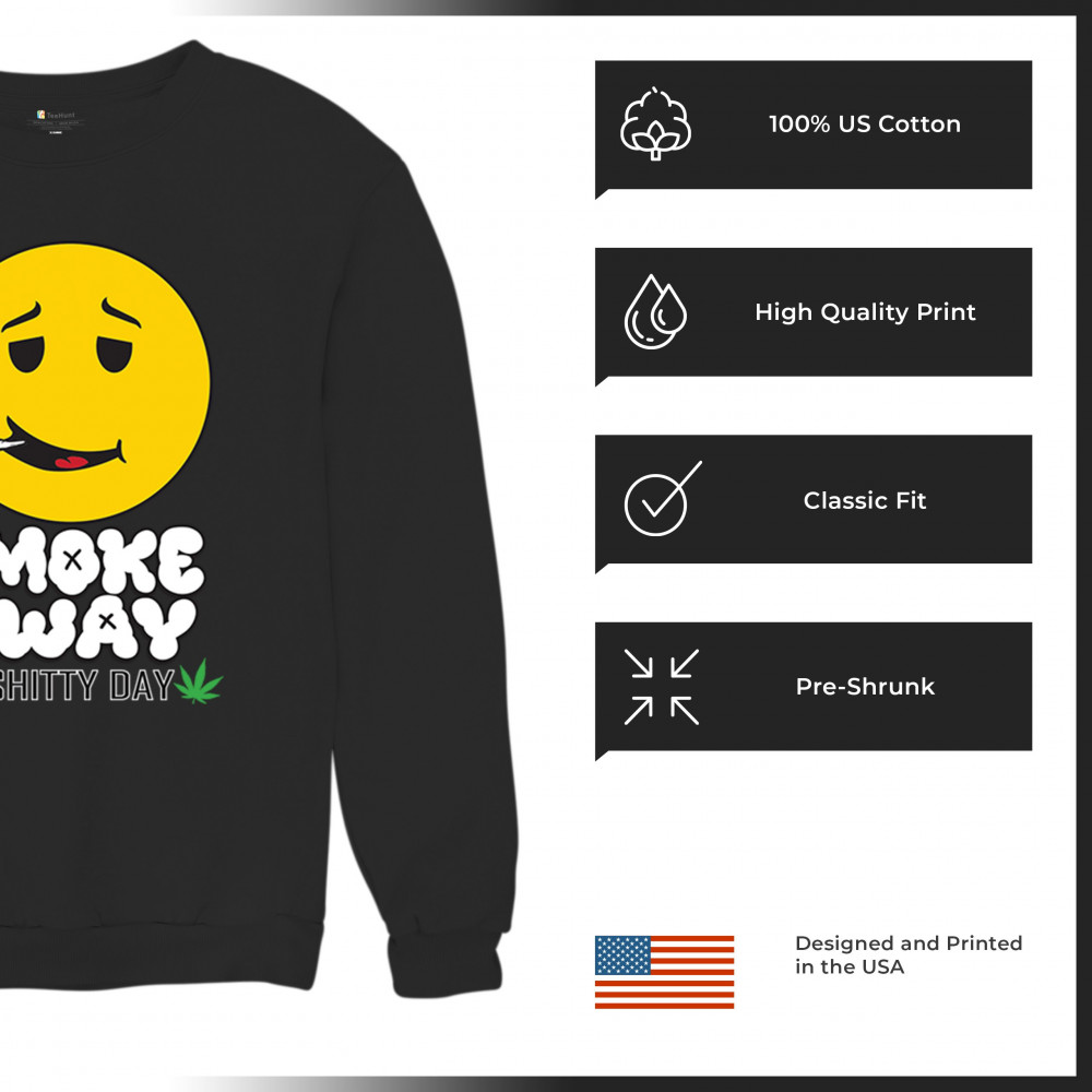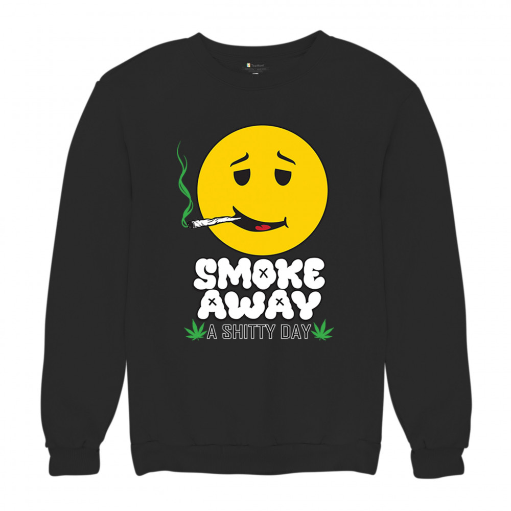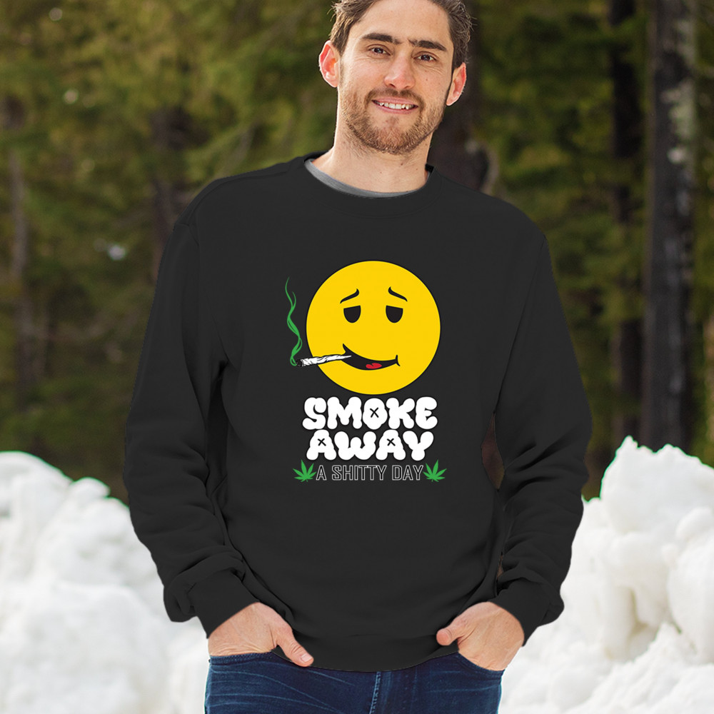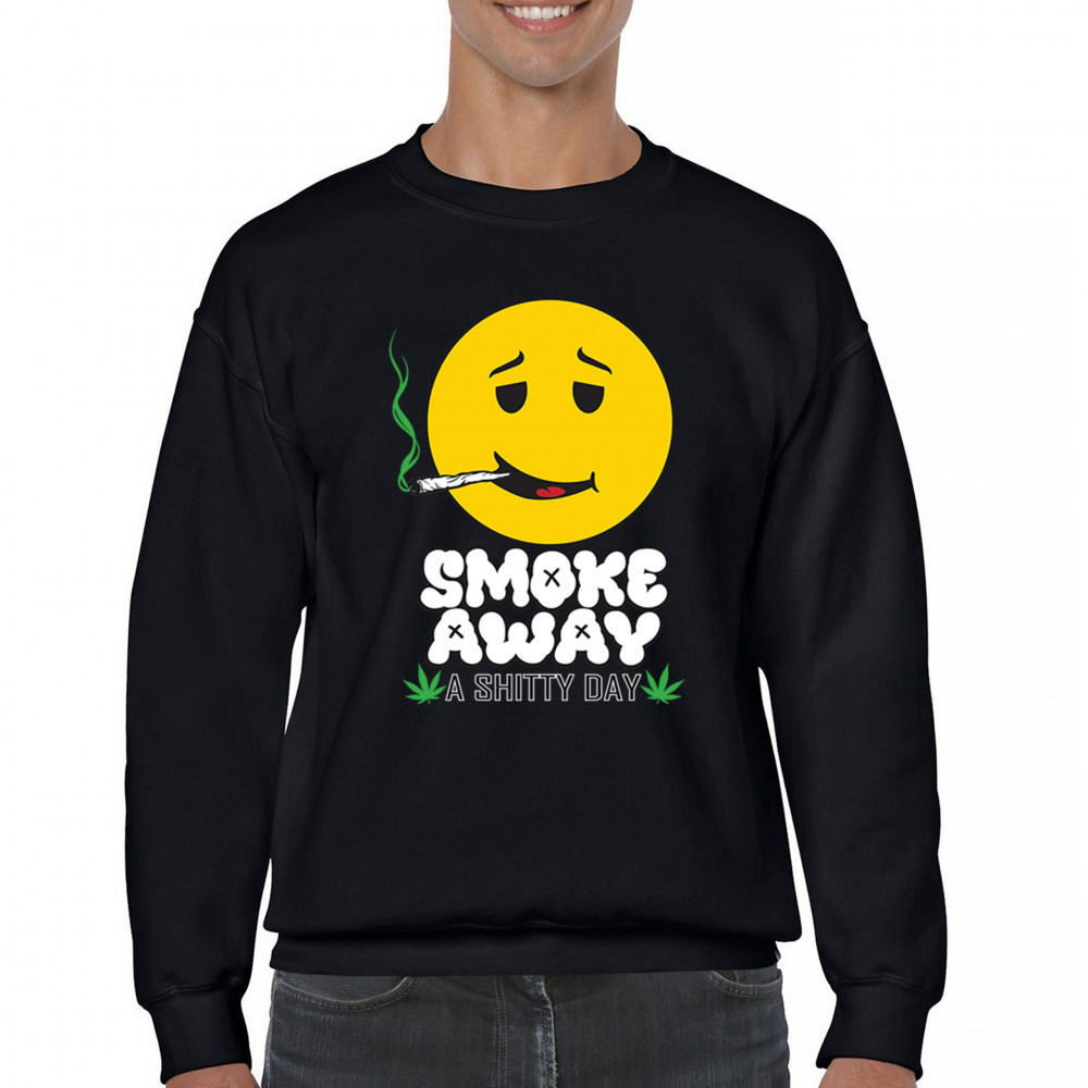 Smiley face with joint and “Smoke Away a Sh*tty Day†message. A perfect cannabis design for stoners, chillers, and sarcastic stress relief.