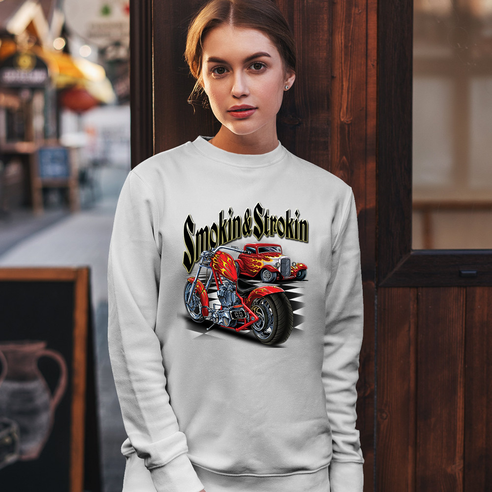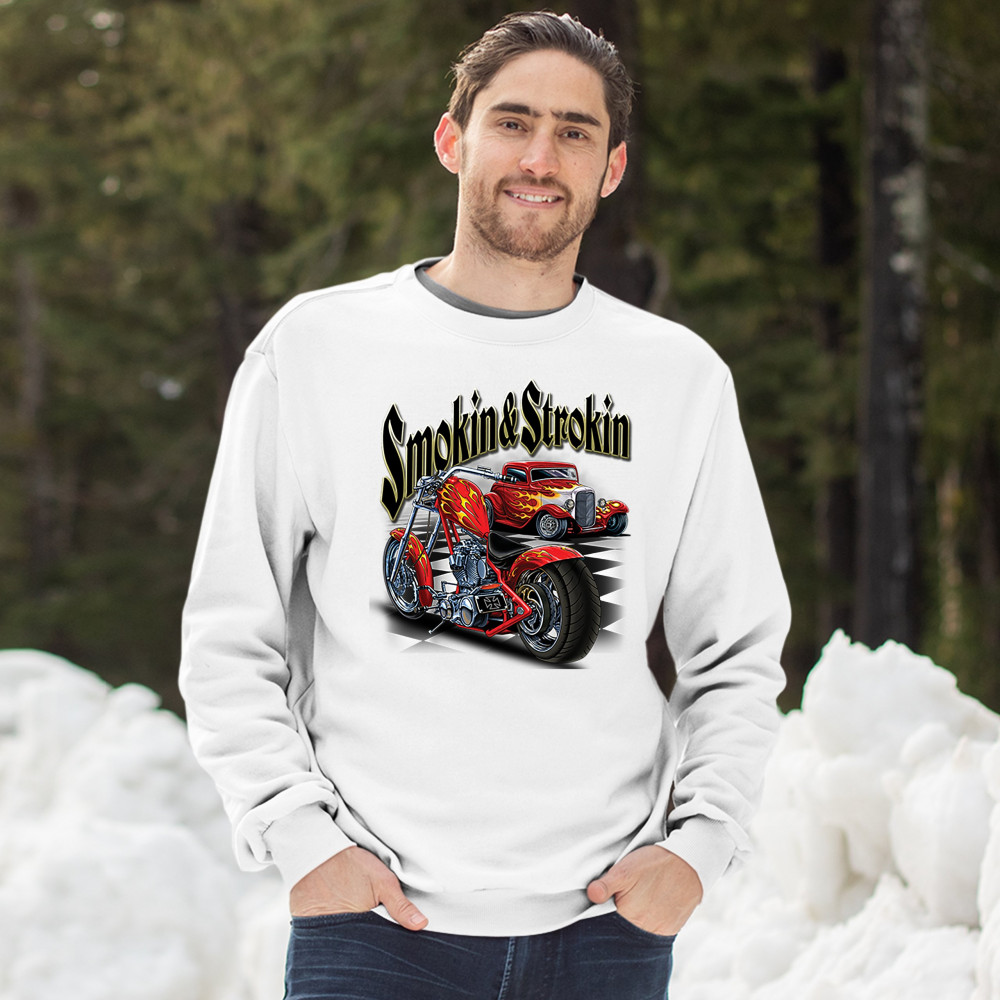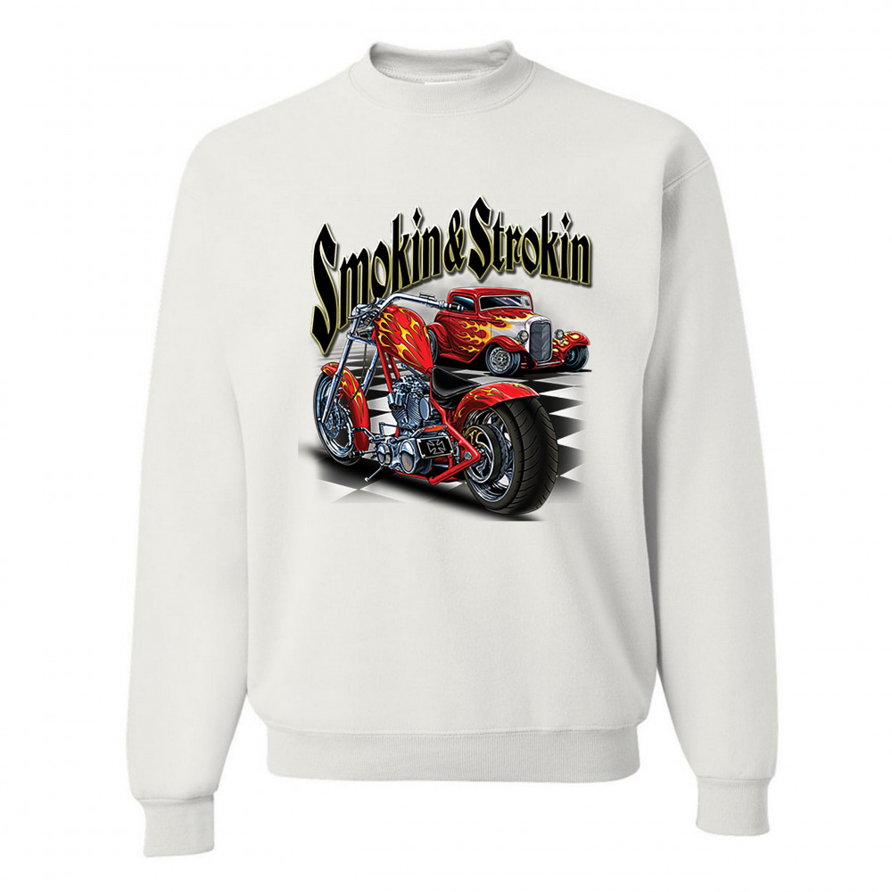 SMOKIN & STROKIN sweatshirt chopper biker hot rod live to ride crewneck white