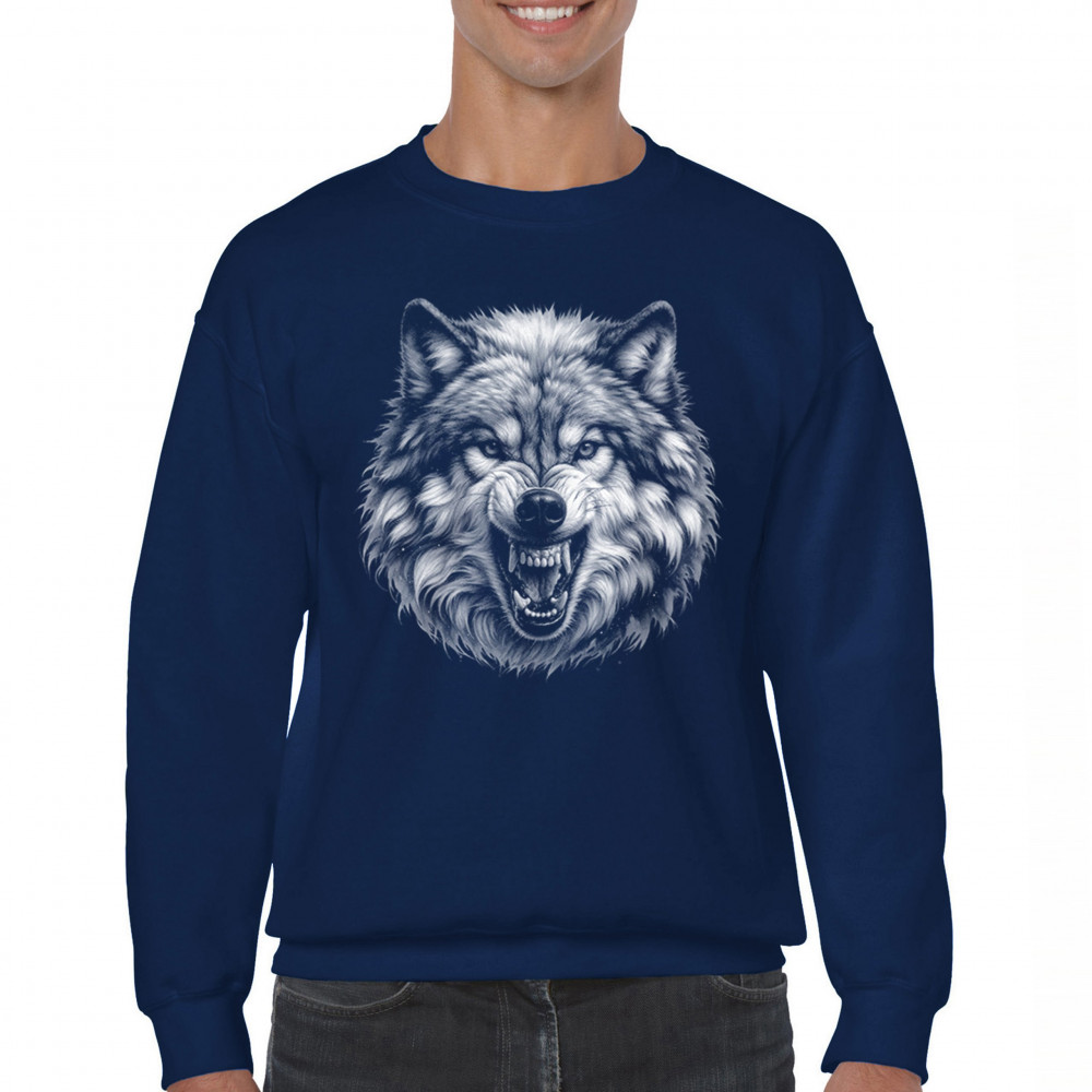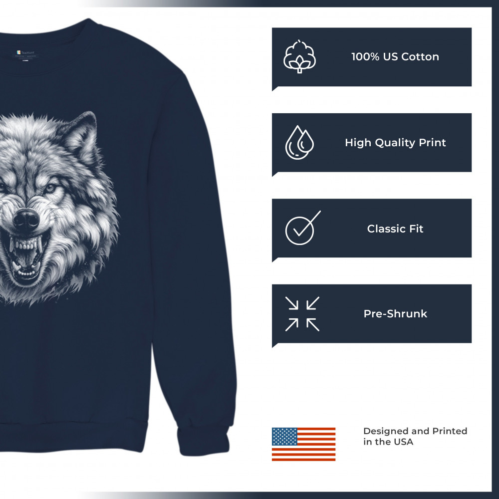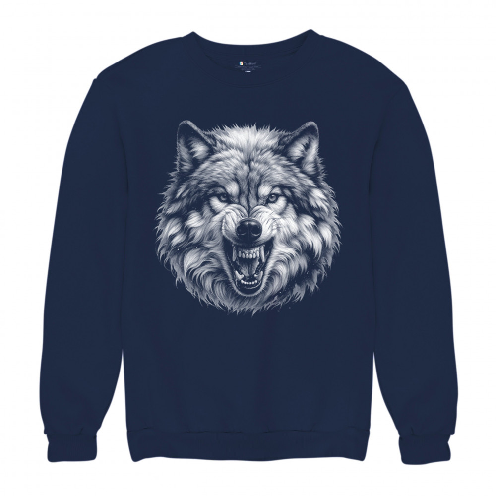 Snarling wolf design with fierce detail and wild spirit. Great for hunters, survivalists, and outdoor alpha energy wear.