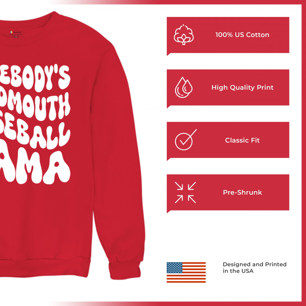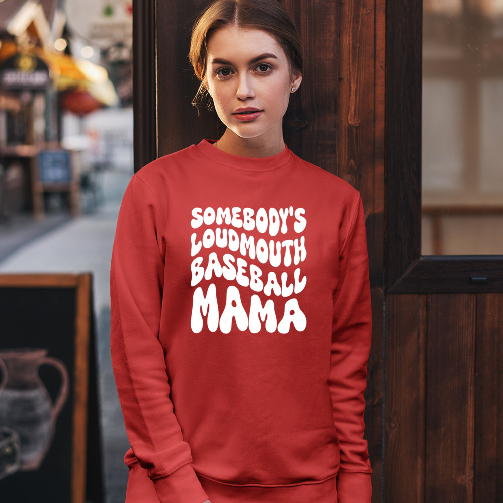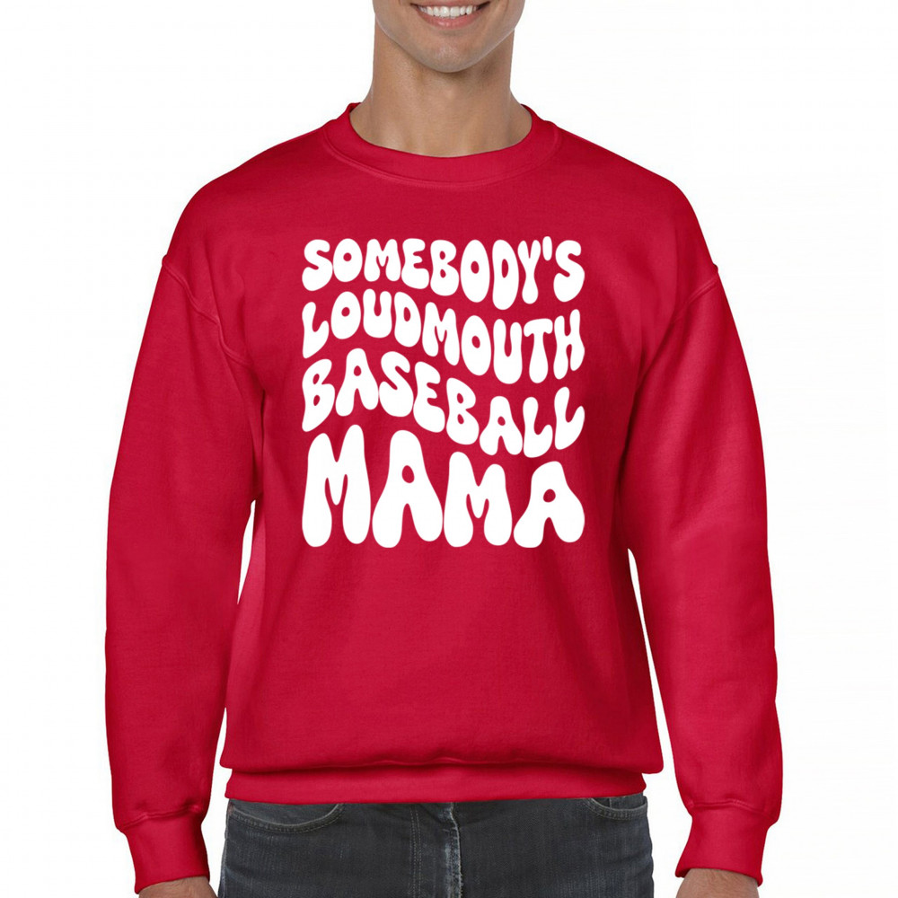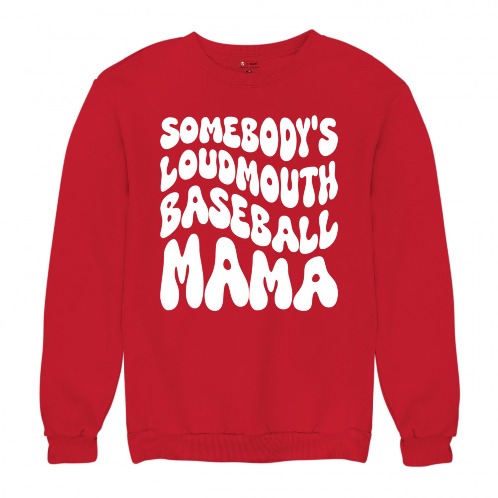 Show off your spirited support with the "Somebody's Loudmouth Baseball Mama" design. Perfect for game days, this bold and playful design captures your enthusiasm and pride.