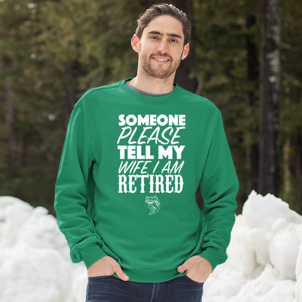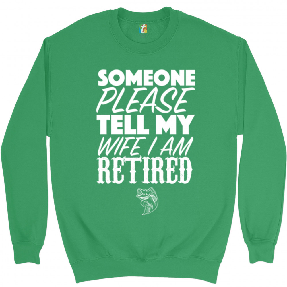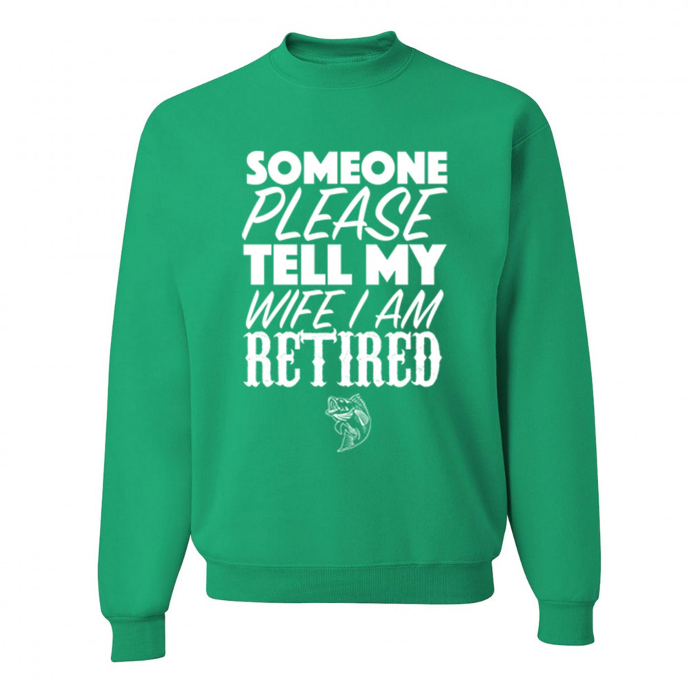 SOMEONE PLEASE TELL MY WIFE I AM RETIRED sweatshirt father's day crewneck green