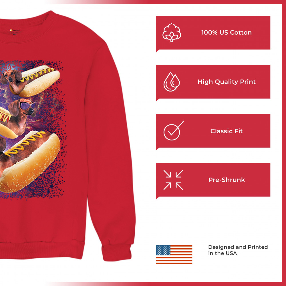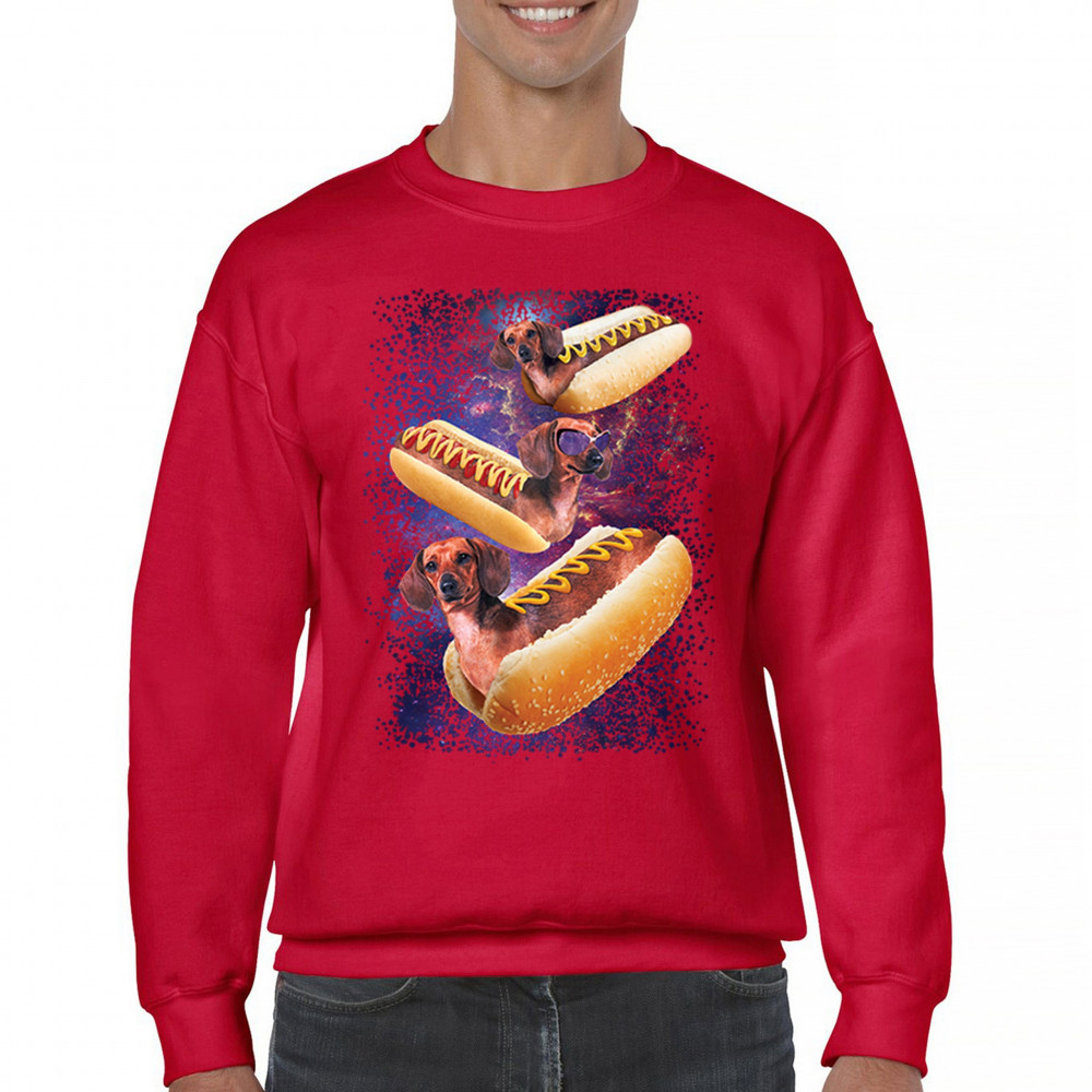 Quirky and fun tee featuring dachshunds as hotdogs in a cosmic setting. Perfect for dog and space lovers. Comfortable and durable.