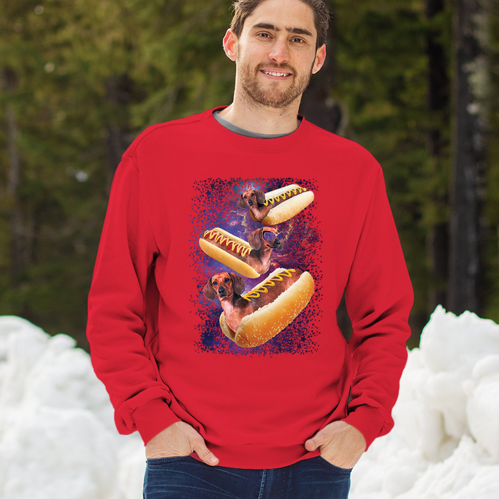 Add a dash of humor to your wardrobe with our unique design featuring adorable dachshunds as hotdogs in a cosmic setting. This playful graphic is perfect for animal lovers and those with a quirky sense of style. The vibrant colors and detailed illustration ensure you stand out in any crowd. Made from premium materials, this tee offers both comfort and durability, making it ideal for everyday wear or special occasions. Embrace your love for dogs and space with this fun and imaginative design.