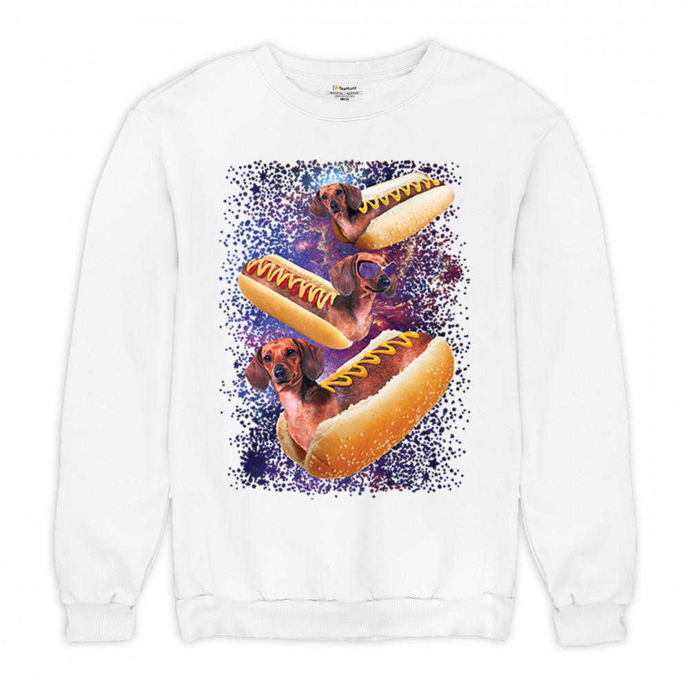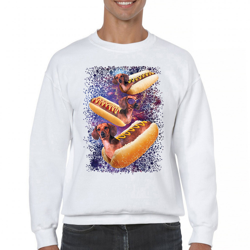 Quirky and fun tee featuring dachshunds as hotdogs in a cosmic setting. Perfect for dog and space lovers. Comfortable and durable.