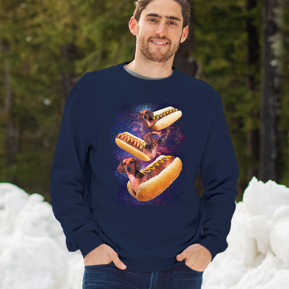 Add a dash of humor to your wardrobe with our unique design featuring adorable dachshunds as hotdogs in a cosmic setting. This playful graphic is perfect for animal lovers and those with a quirky sense of style. The vibrant colors and detailed illustration ensure you stand out in any crowd. Made from premium materials, this tee offers both comfort and durability, making it ideal for everyday wear or special occasions. Embrace your love for dogs and space with this fun and imaginative design.