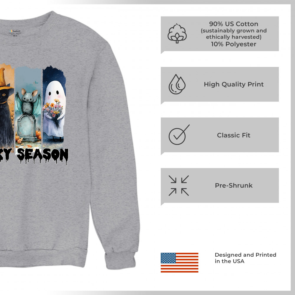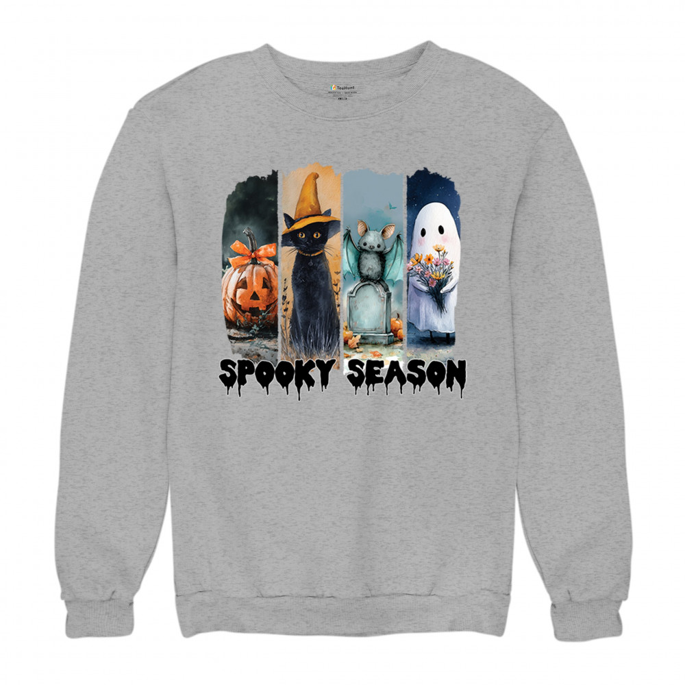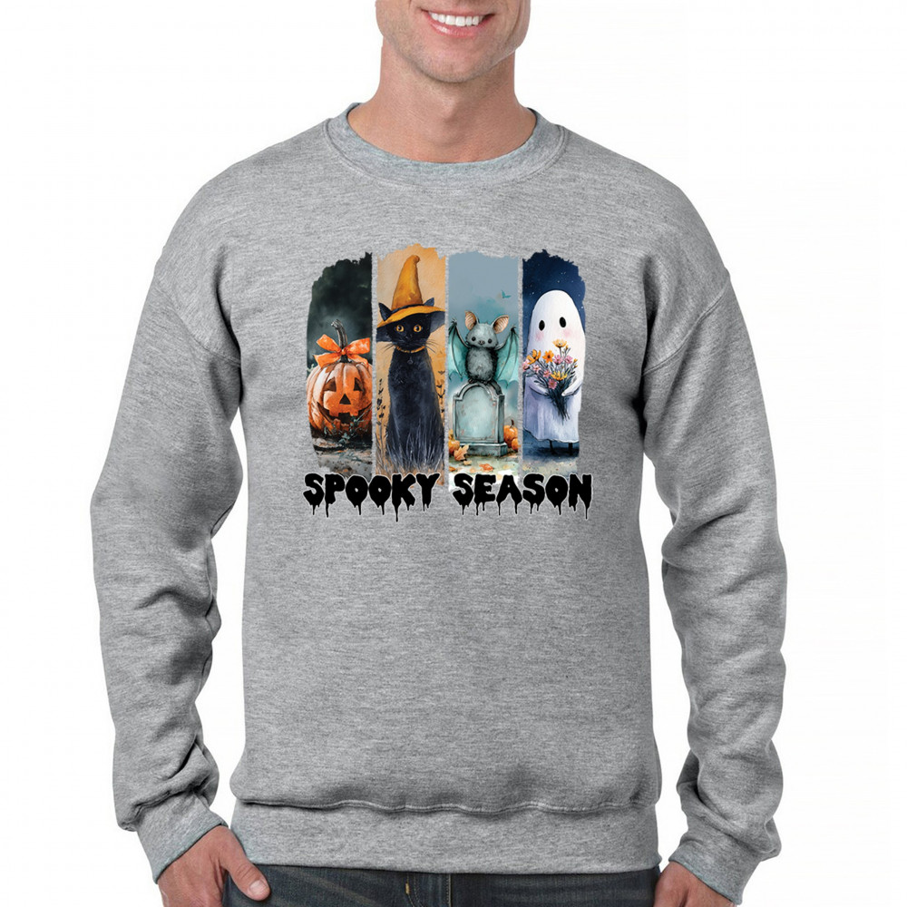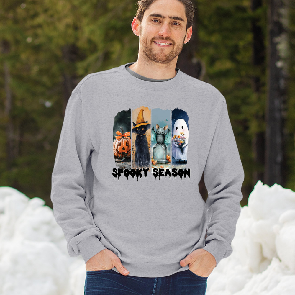 SPOOKY SEASON QUAD crewneck sweatshirt halloween trick or treat pumpkin head gray
