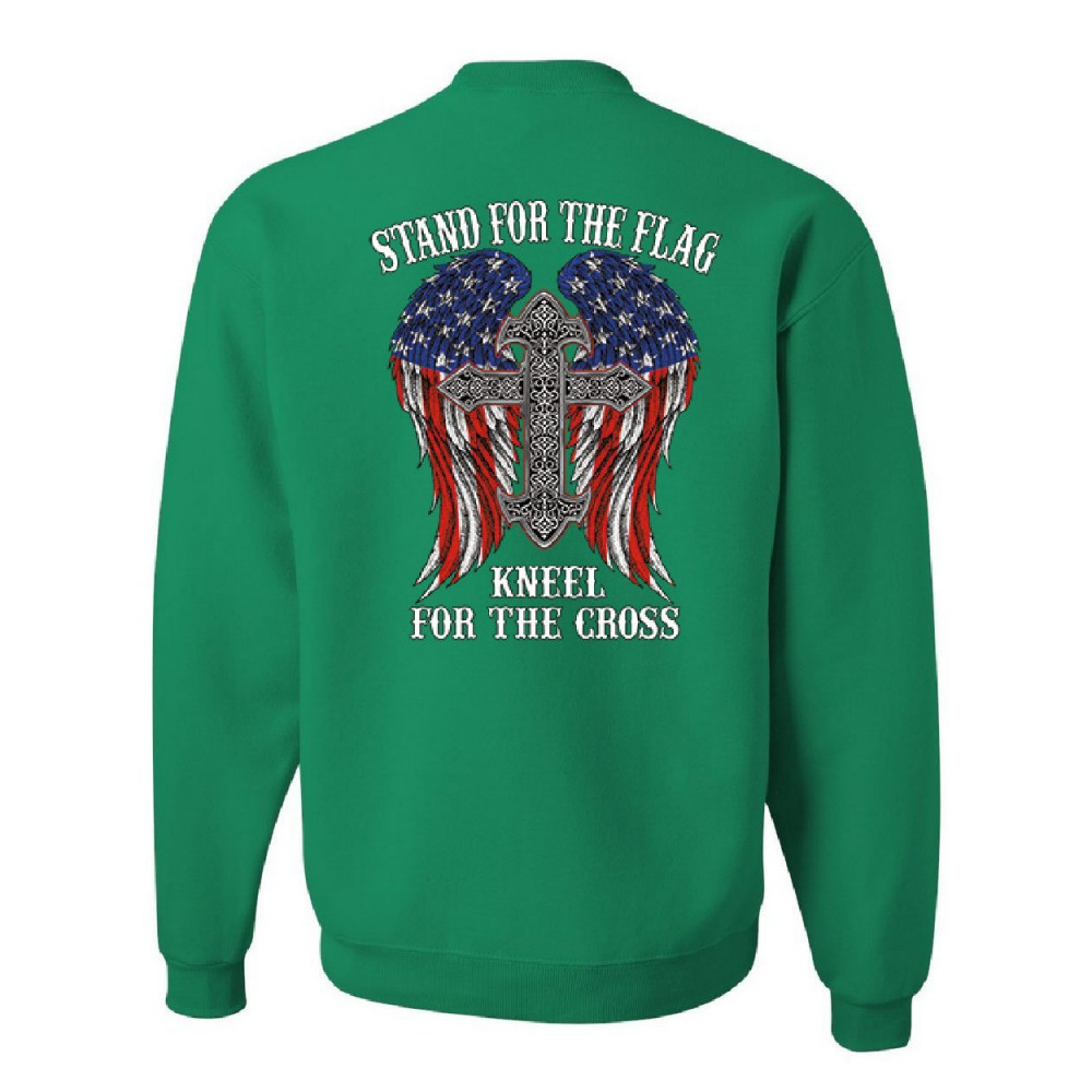 STAND FOR THE FLAG KNEEL FOR THE CROSS sweatshirt patriot political sweater green