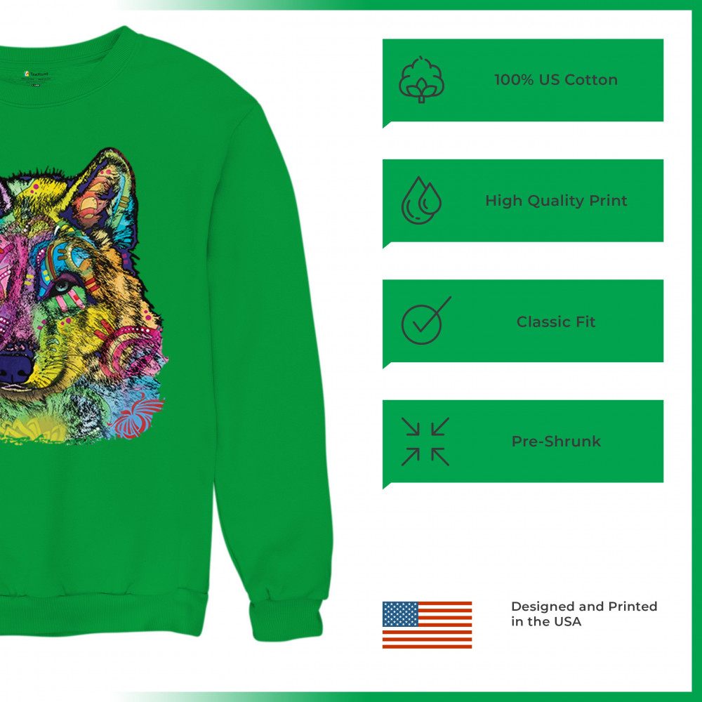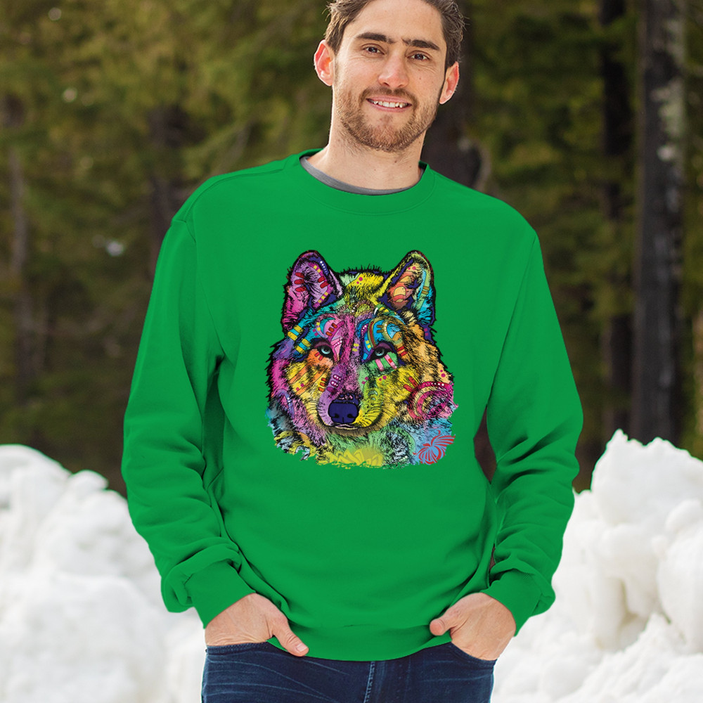 STARE OF THE WOLF sweatshirt dean russo colorful neon animal art crewneck green