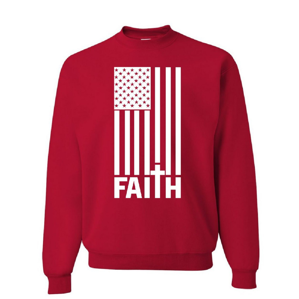STARS AND STRIPES FAITH sweatshirt american values cross jesus god sweater red