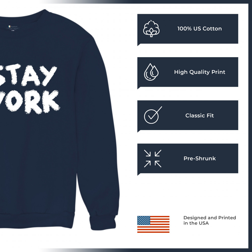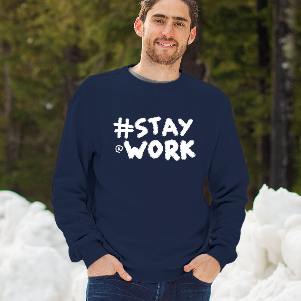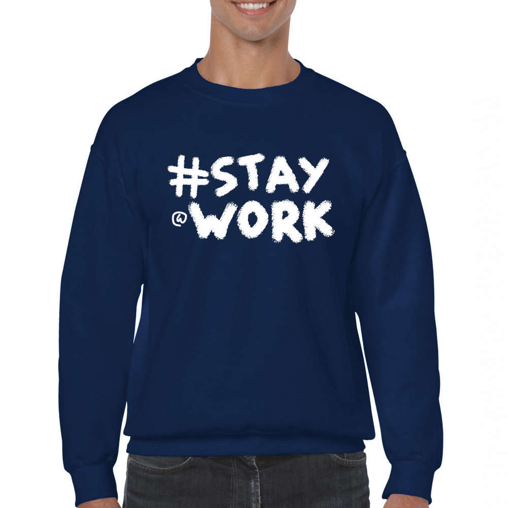 STAY AT WORK FUNNY ELON MUSK TWEET PARODY sweatshirt liberal sarcasm crewneck navy blue