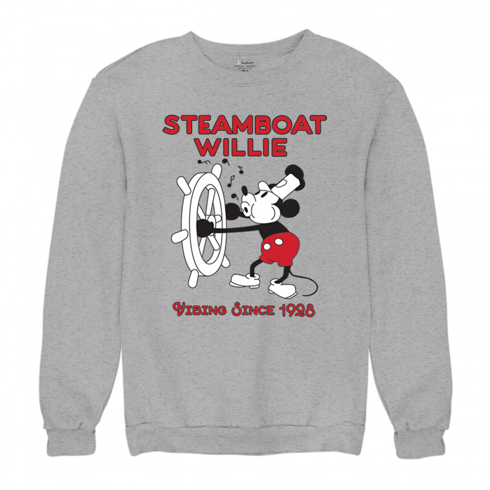 STEAMBOAT WILLIE VIBING SINCE 1928 sweatshirt retro cartoon mouse icon crewneck gray