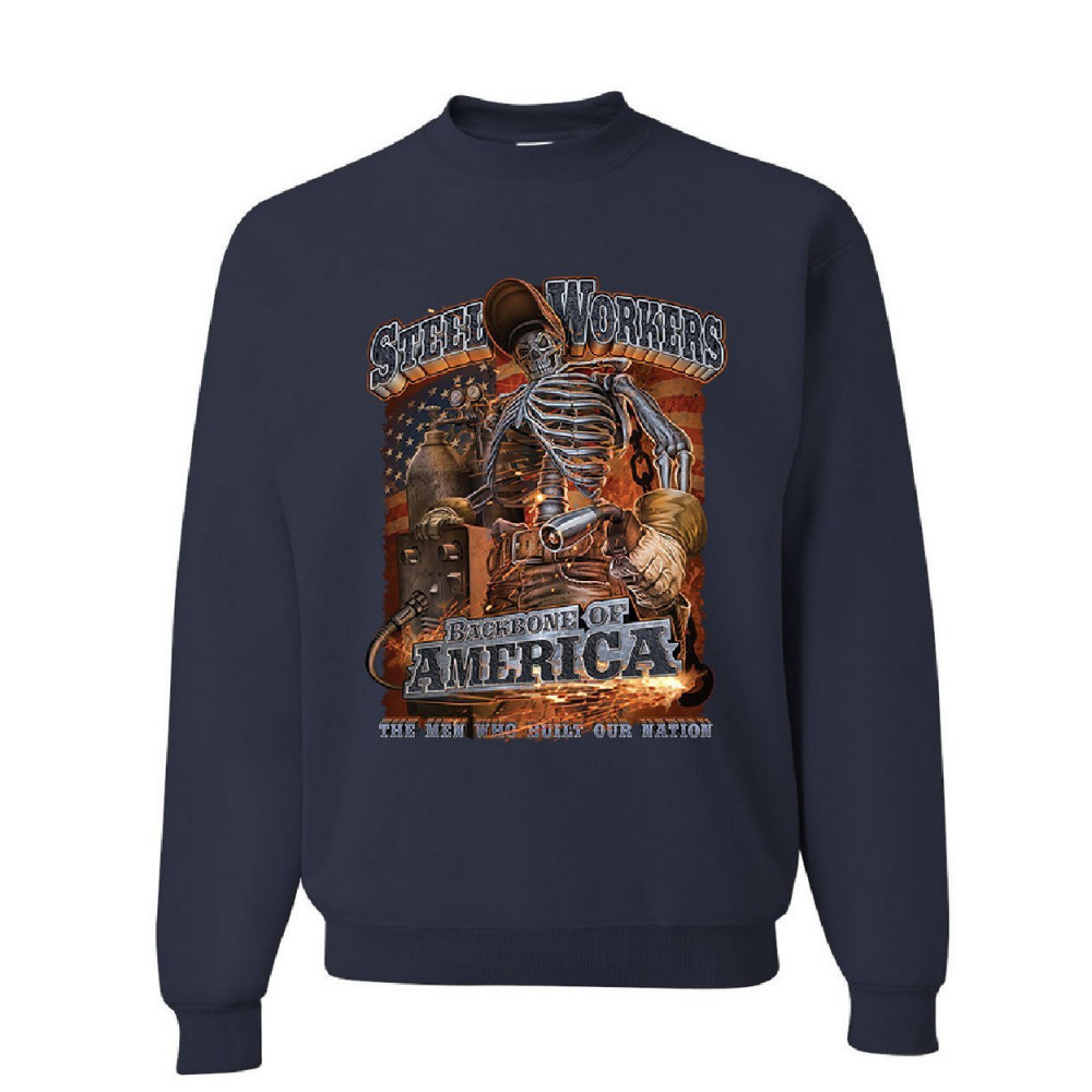 STEELWORKERS - BACKBONE OF AMERICA steel workers backbone of america sweatshirt welding iron metal sweater navy blue
