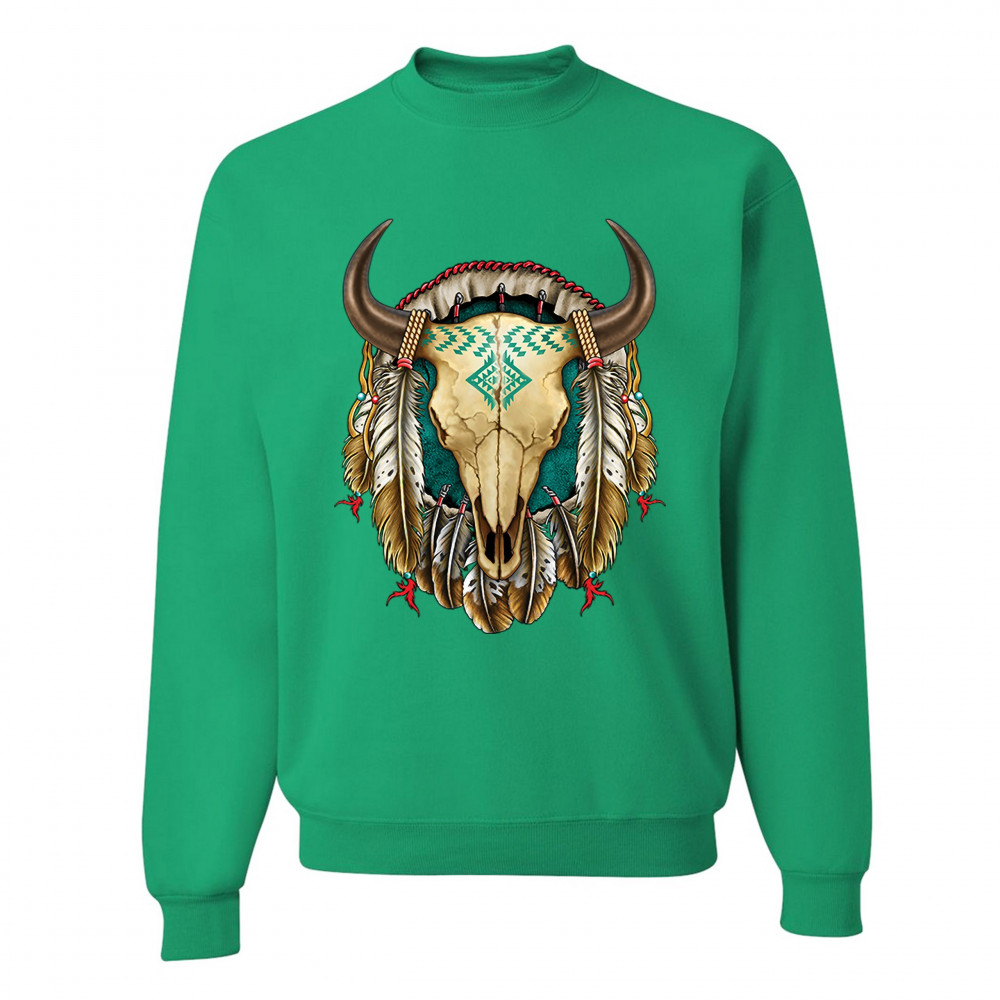 STEER SKULL DREAMCATCHER sweatshirt native american indigenous culture crewneck green