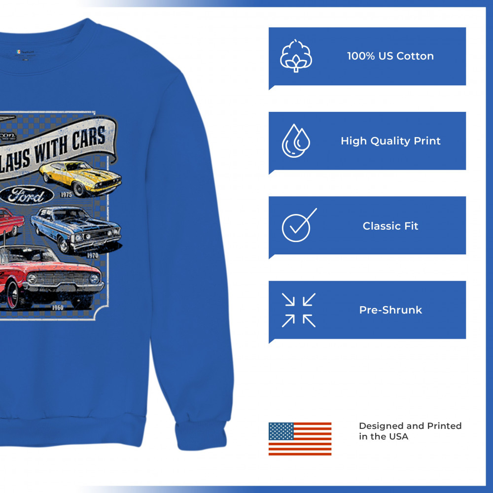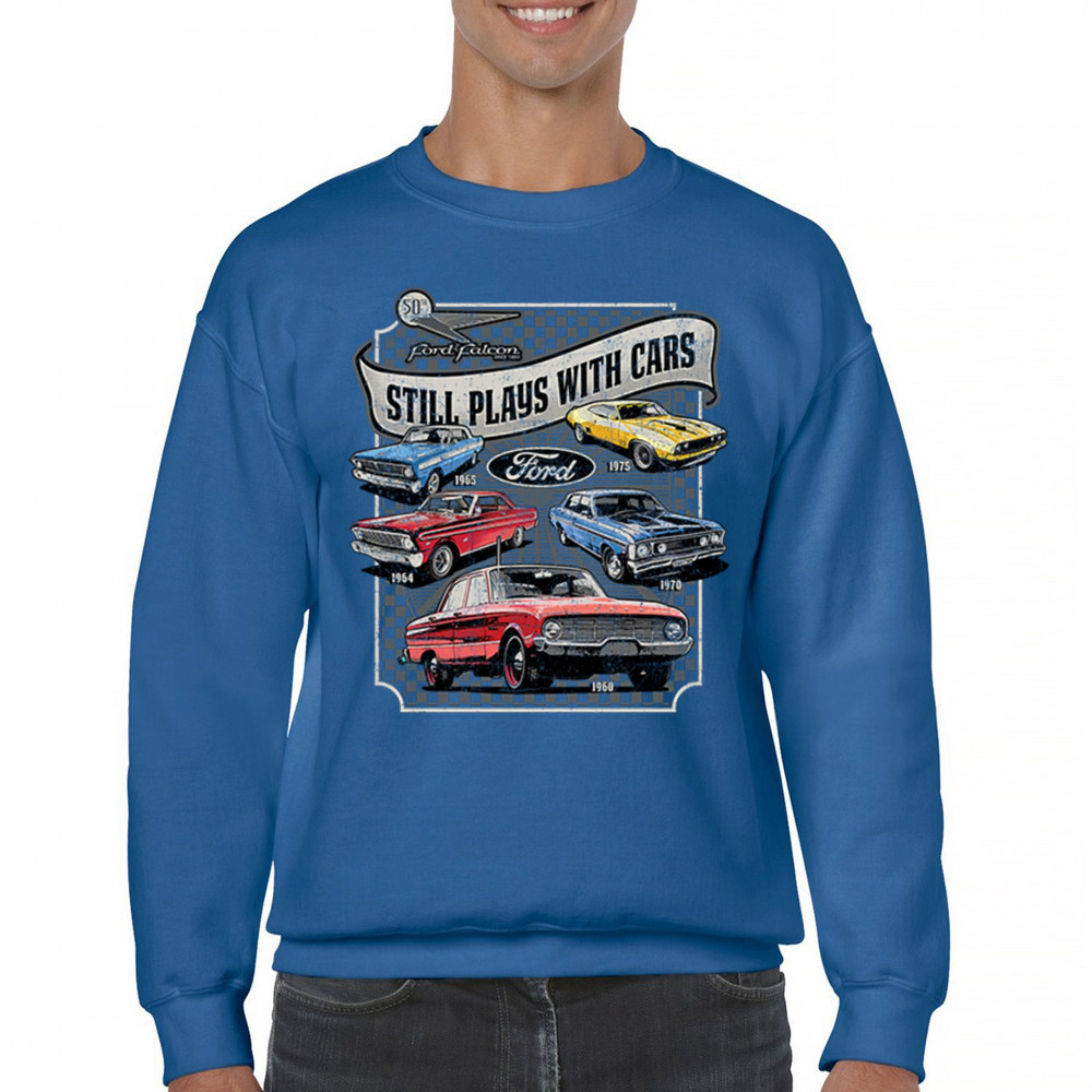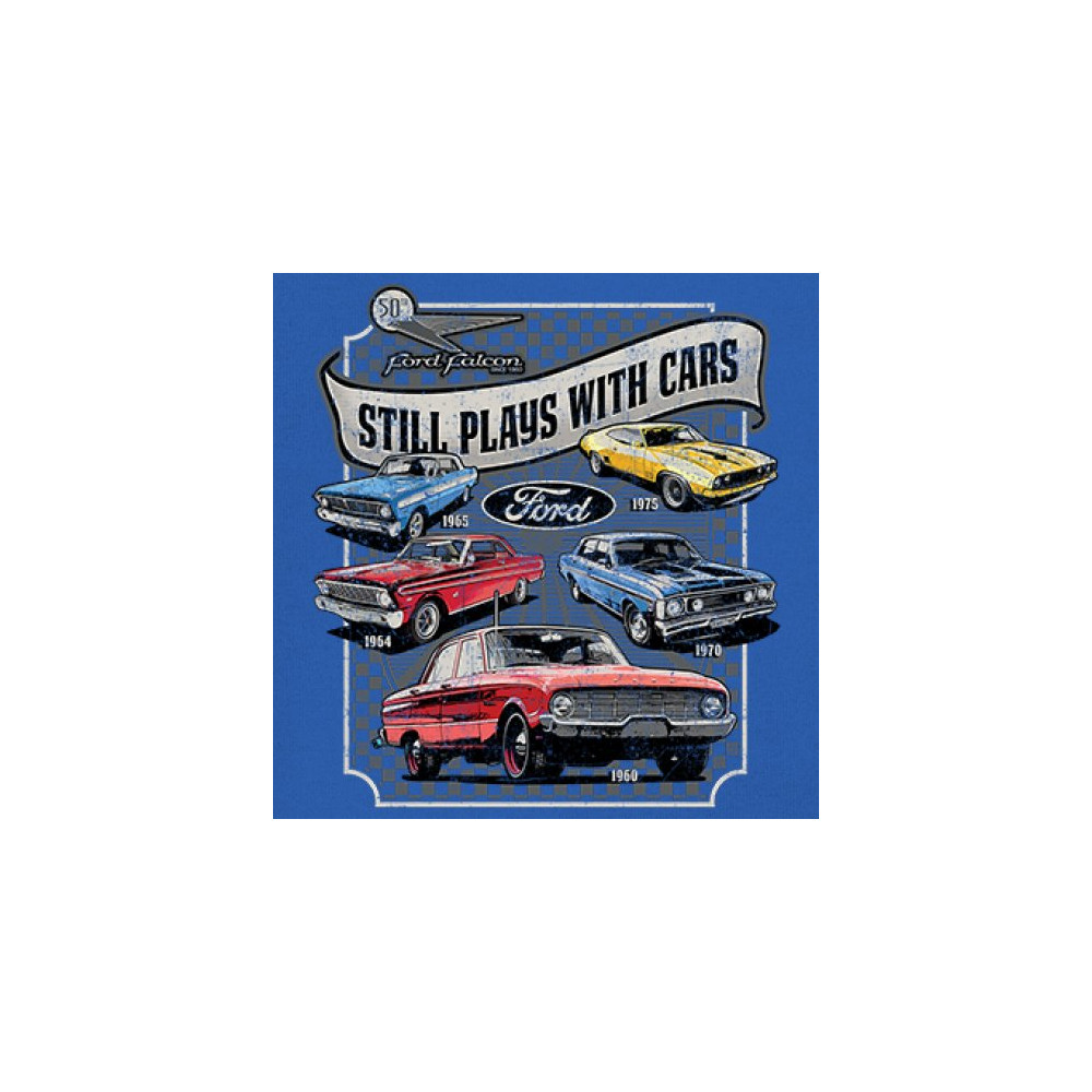 Still Plays With Cars pays tribute to the Ford Falcon, showcasing legendary models from the 60s and 70s for true vintage car lovers. Perfect for gearheads, hot rod fans, and classic car collectors, this design celebrates retro automobile culture, vintage horsepower, and old school rides. A great value piece for anyone devoted to the classic car scene.