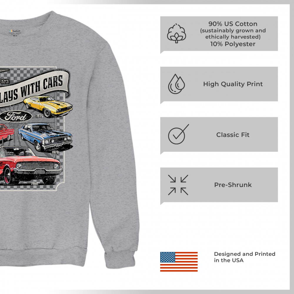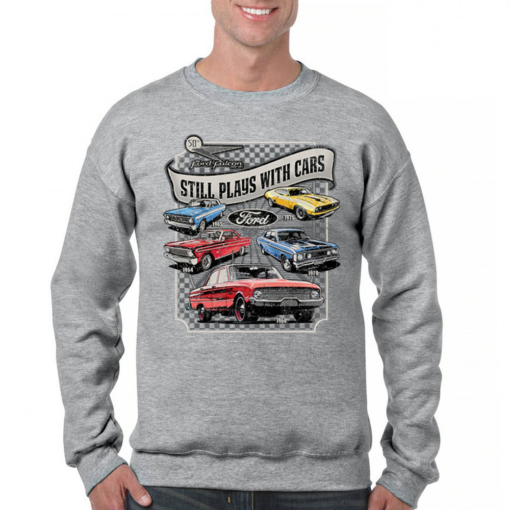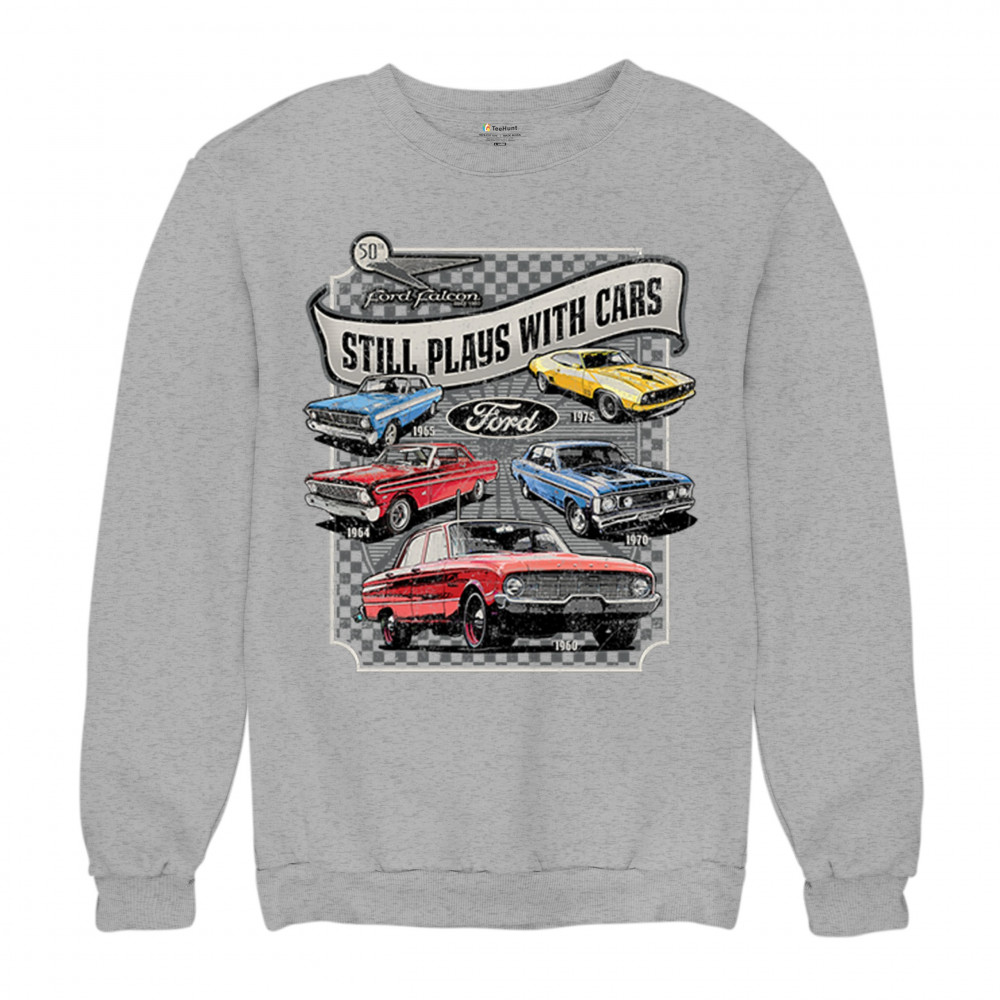 Still Plays With Cars pays tribute to the Ford Falcon, showcasing legendary models from the 60s and 70s for true vintage car lovers. Perfect for gearheads, hot rod fans, and classic car collectors, this design celebrates retro automobile culture, vintage horsepower, and old school rides. A great value piece for anyone devoted to the classic car scene.