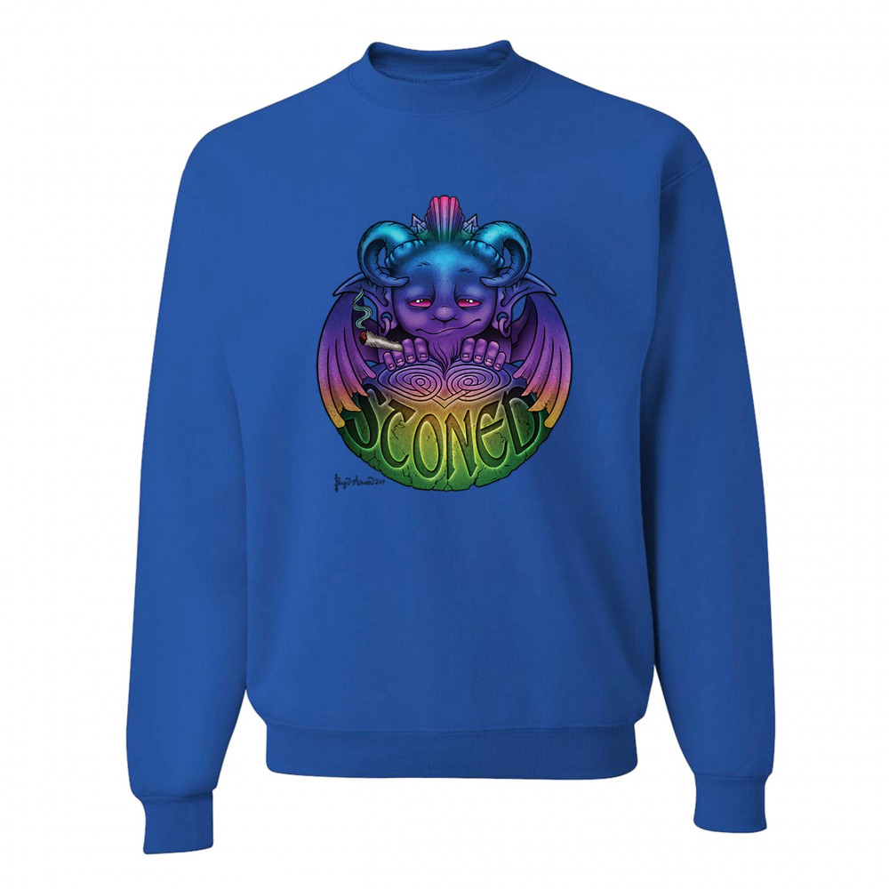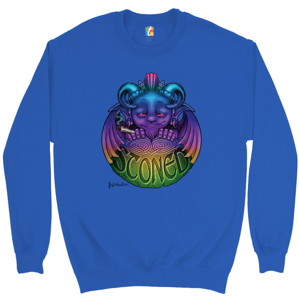 STONED GARGOYLE sweatshirt pot marijuana joint funny weird 420 crewneck royal blue