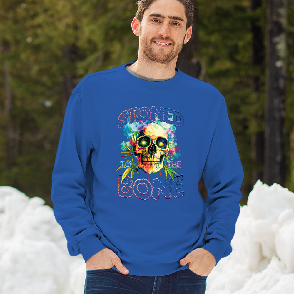 Turn heads with this bold, psychedelic “Stoned to the Bone†skull tee—loaded with neon colors, weed leaves, and a trippy aesthetic. It’s built for cannabis lovers, hippies, festival-goers, and party people living the high life. The ultimate head shop style and 420 fashion statement.