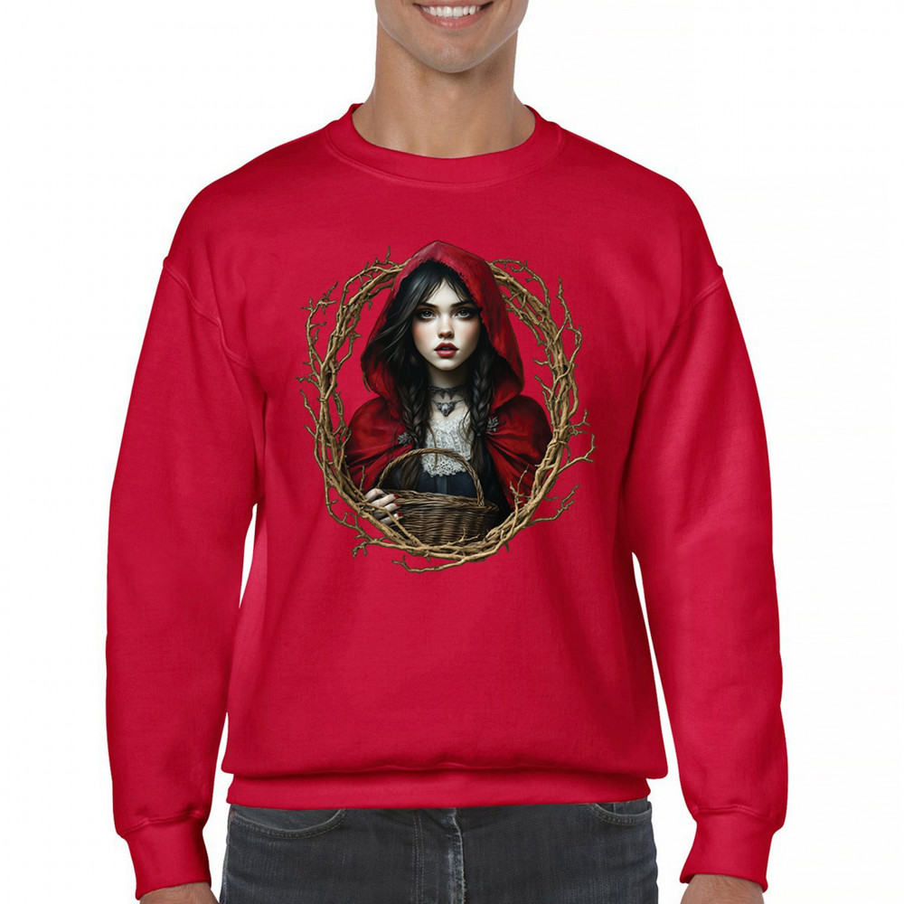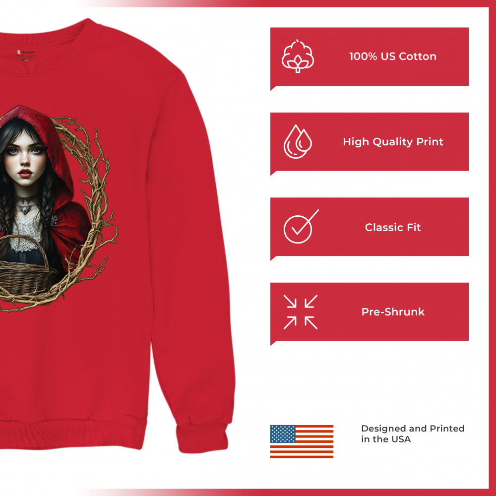 STORYBOOK RED RIDING HOOD sweatshirt gothic fairytale cute little girl crewneck red