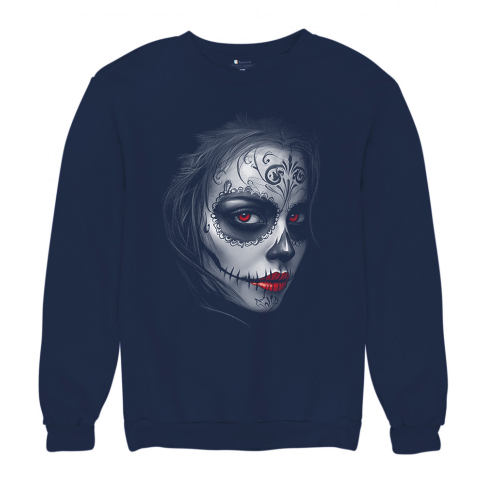 Glowing red eyes and red lips bring this sugar skull design to life. Featuring floral skull makeup, dark shadows, and gothic energy, it's a perfect pick for Halloween, DÃa de los Muertos, or alt culture fashion. Ideal for fans of bold beauty, spooky glamour, and skull art with an edge.