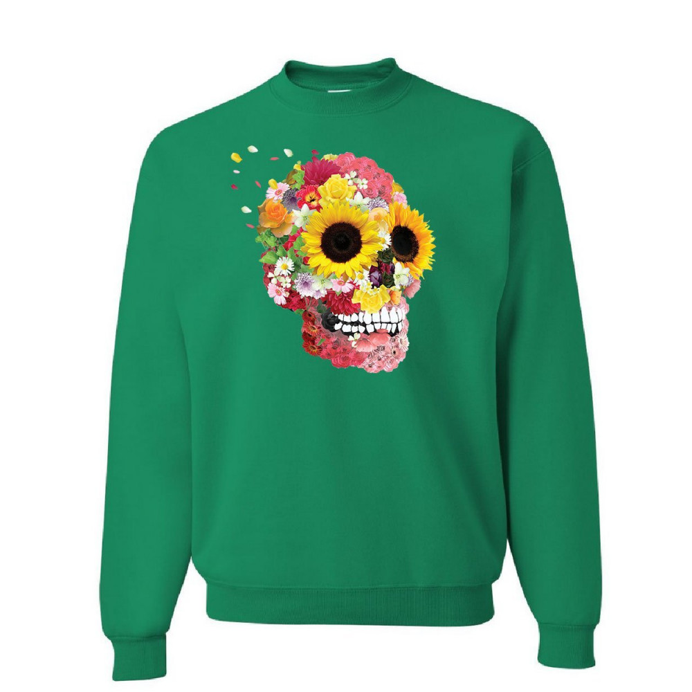 SUNFLOWERS SUGAR SKULL sweatshirt day of the dead calavera mexico sweater green
