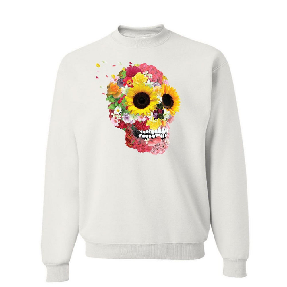 SUNFLOWERS SUGAR SKULL sweatshirt day of the dead calavera mexico sweater white