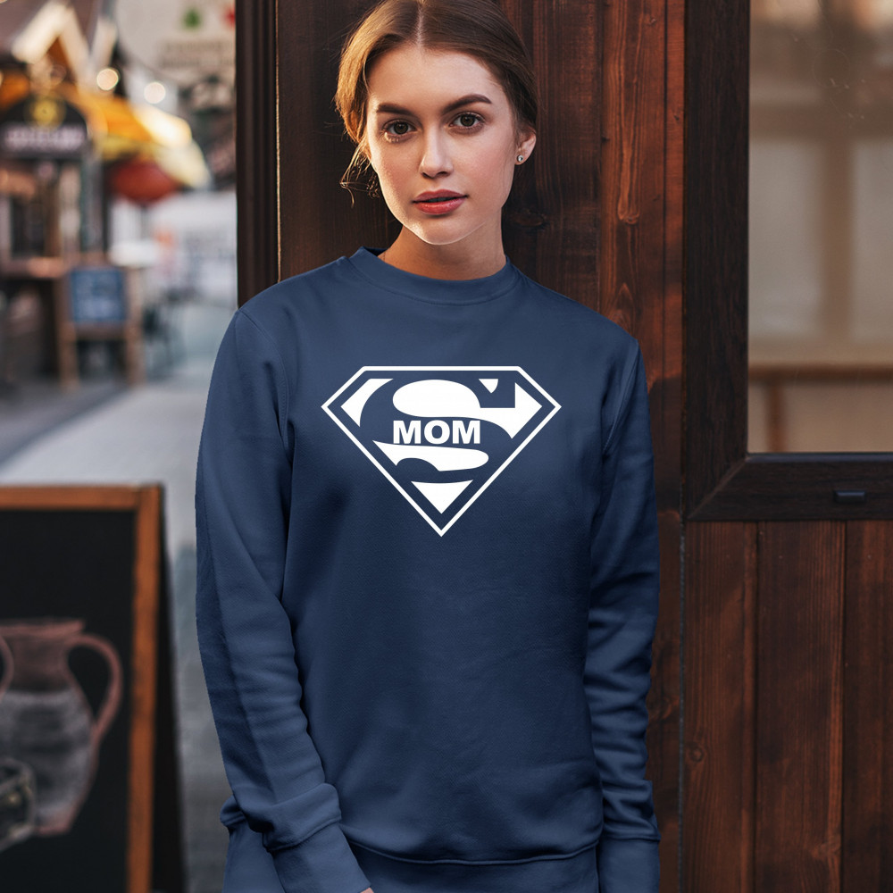 SUPER MOM FUNNY sweatshirt superhero parody mother's day crewneck navy blue