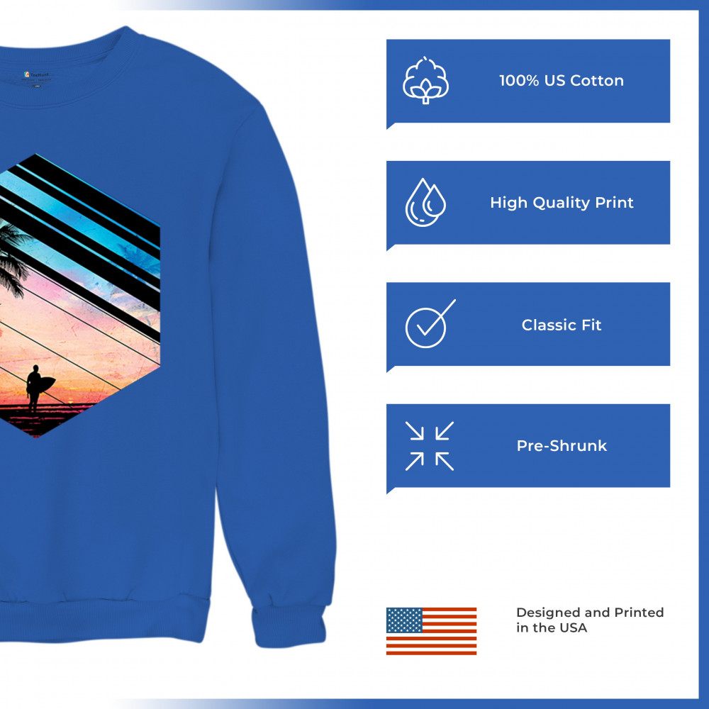 Catch the vibe of endless summer with our surf-inspired tee. Featuring silhouetted palms, warm gradients, and cool geometric shapes, it’s a visual journey from the urban grind to tropical tranquility. This tee is for the soul surfers and dreamers, made to be as enduring as the memories of your last wave. It's more than apparel—it’s a horizon of possibilities. Add this staple to your collection and let the good times roll.
