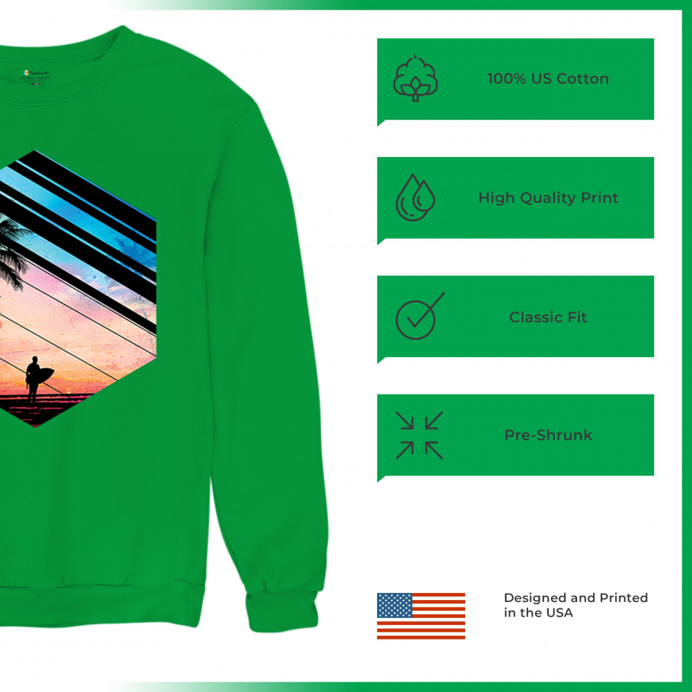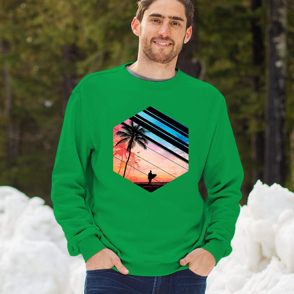Catch the vibe of endless summer with our surf-inspired tee. Featuring silhouetted palms, warm gradients, and cool geometric shapes, it’s a visual journey from the urban grind to tropical tranquility. This tee is for the soul surfers and dreamers, made to be as enduring as the memories of your last wave. It's more than apparel—it’s a horizon of possibilities. Add this staple to your collection and let the good times roll.