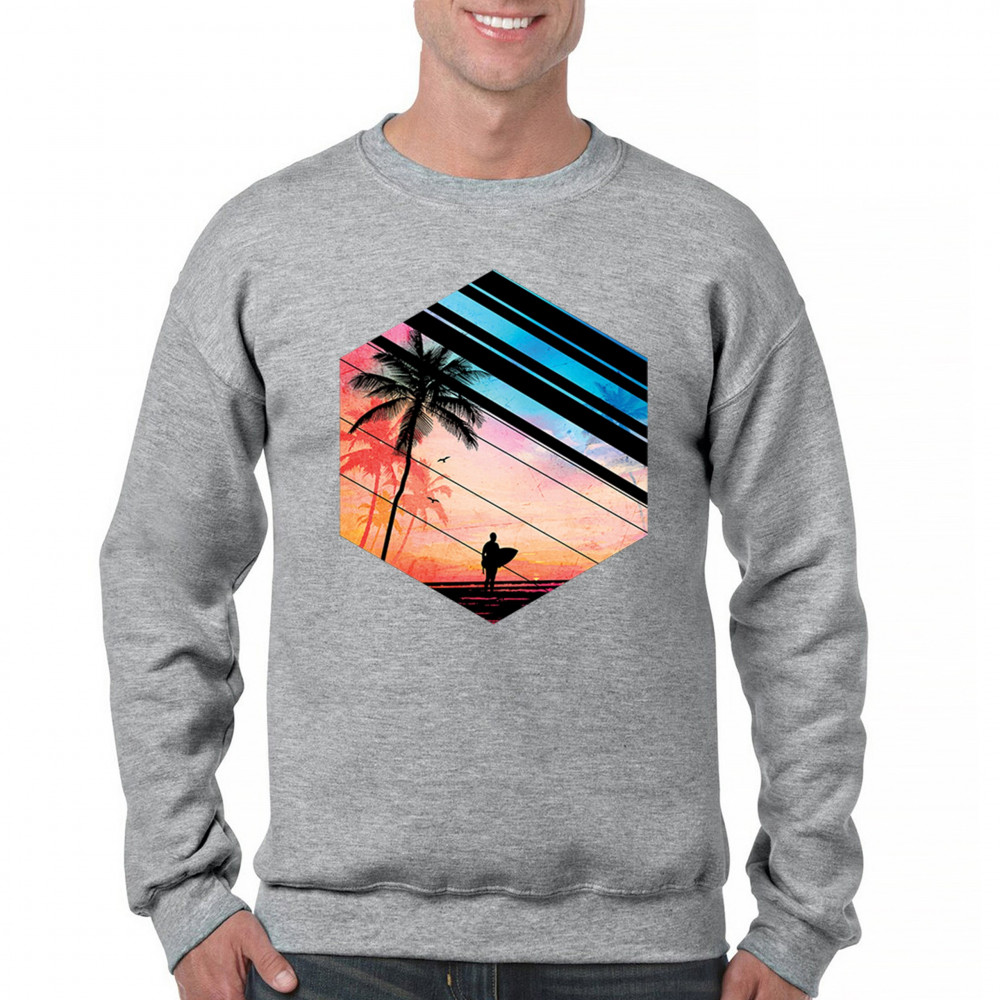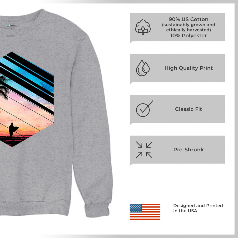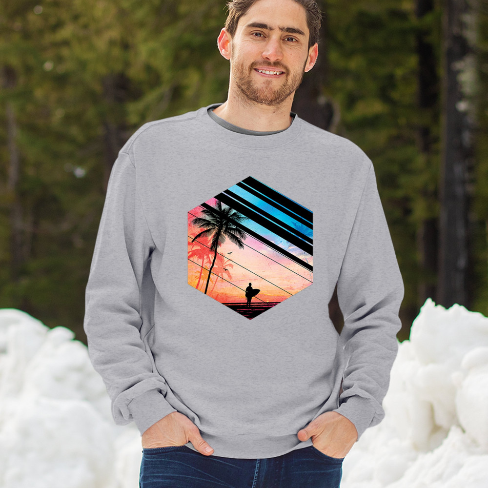Catch the vibe of endless summer with our surf-inspired tee. Featuring silhouetted palms, warm gradients, and cool geometric shapes, it’s a visual journey from the urban grind to tropical tranquility. This tee is for the soul surfers and dreamers, made to be as enduring as the memories of your last wave. It's more than apparel—it’s a horizon of possibilities. Add this staple to your collection and let the good times roll.